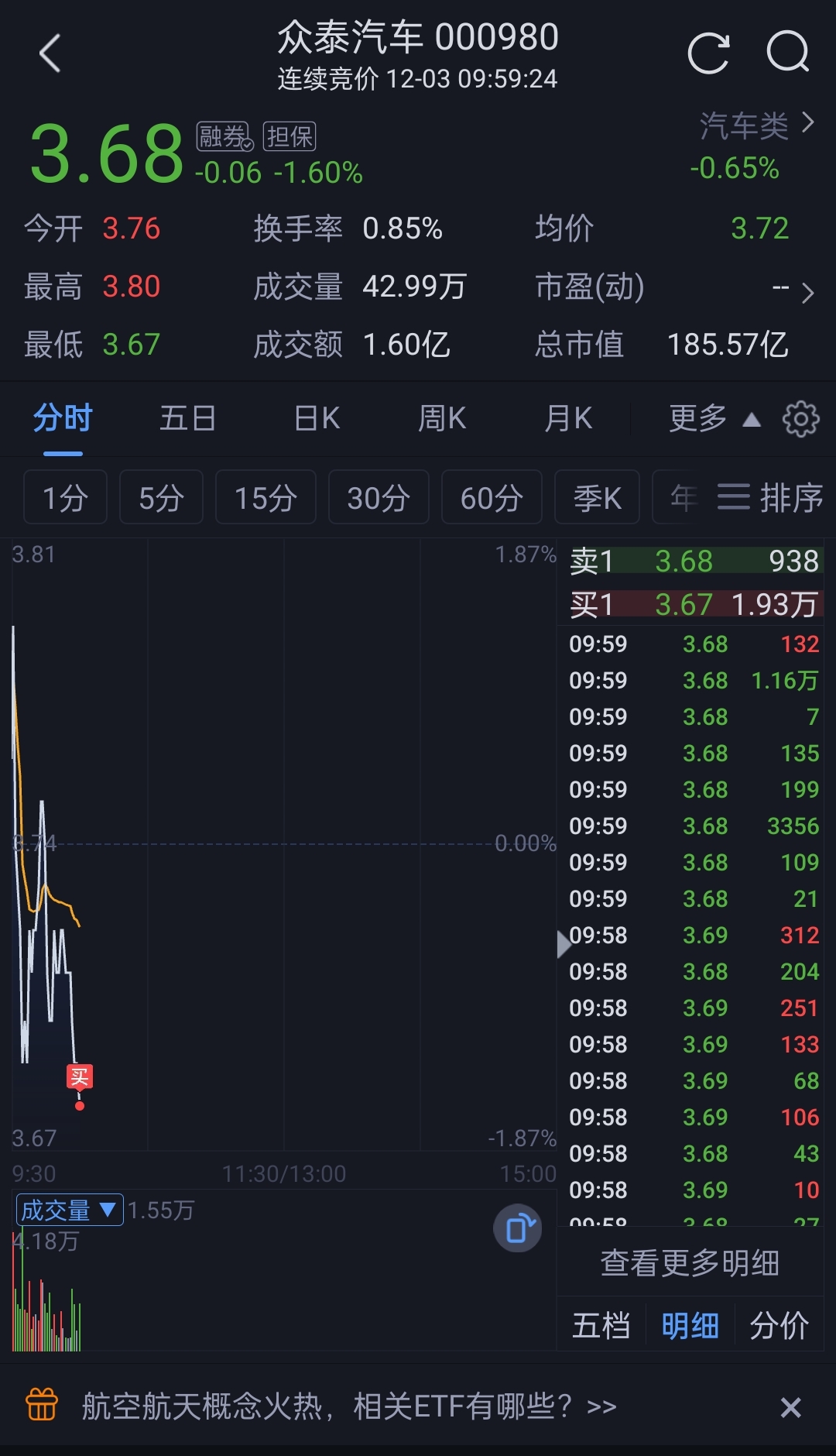 $众泰汽车(SZ000980)$ 底线是3.6,看看能不能稳住