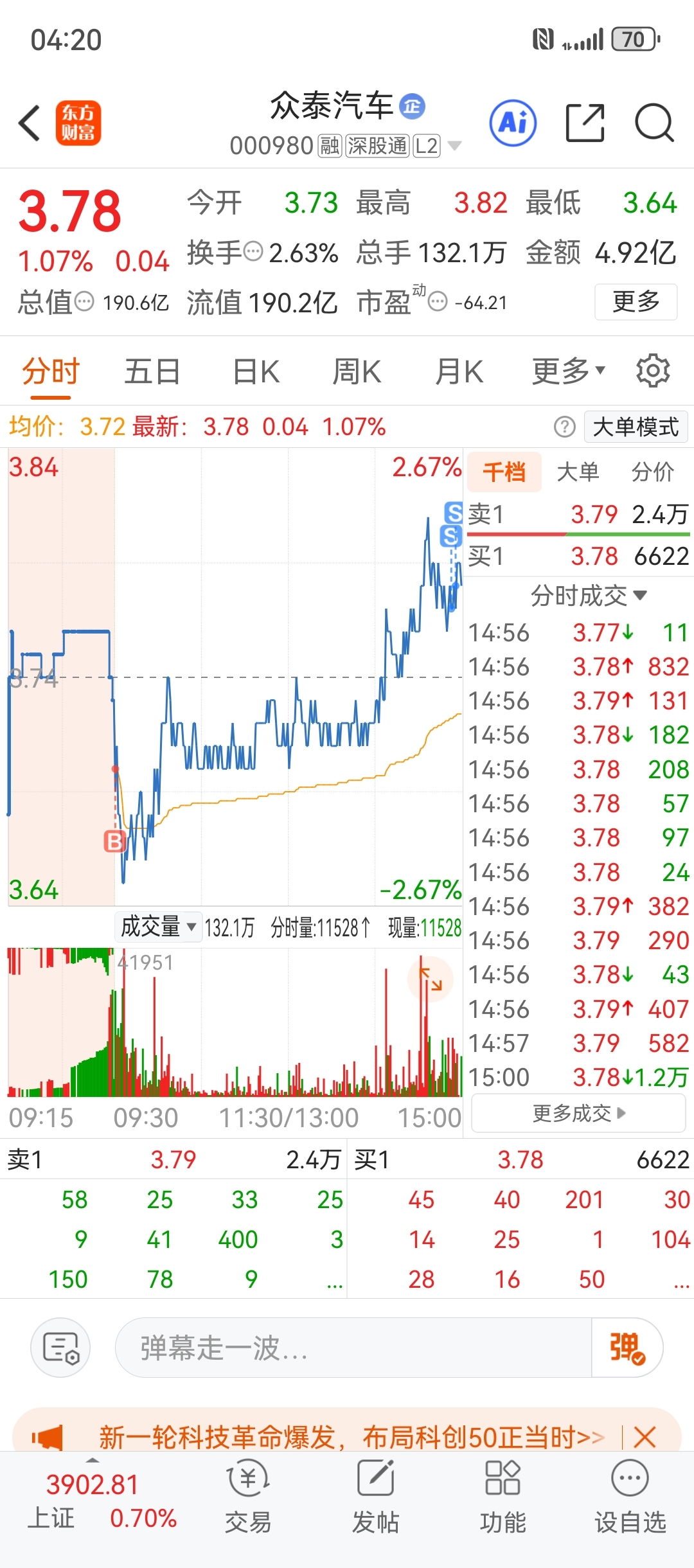 $众泰汽车(SZ000980)$ 周末愉快,12月开始每天拿30万做做t,看看一个月下来亏还是赚
