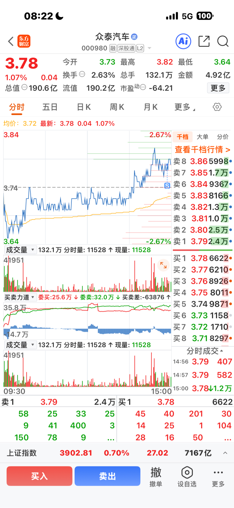 $众泰汽车(SZ000980)$ 虽然尾盘卖了,但我还要坚决唱多