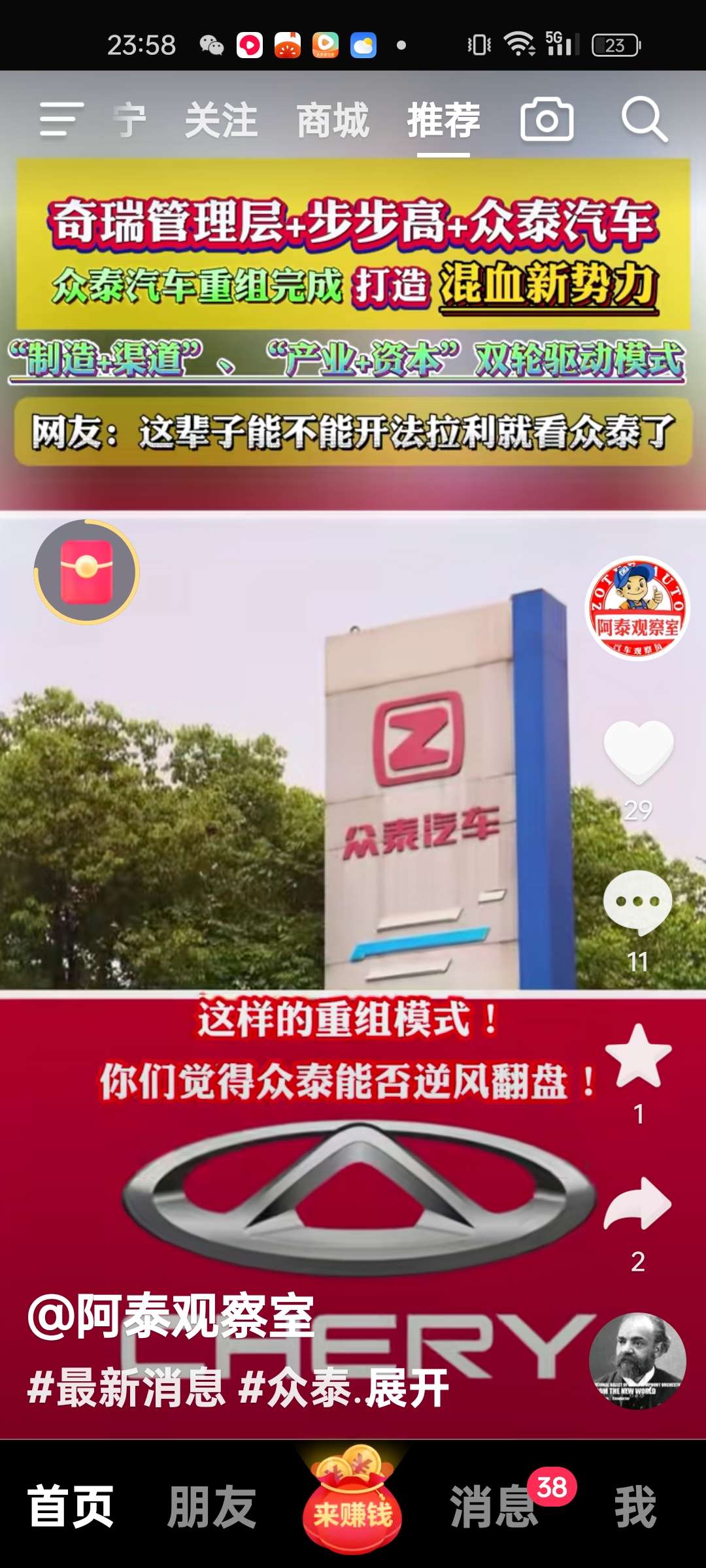 众泰新能源汽车最新消息,预计明天开始有大佬注资众泰汽车大约3.8亿整备金,众泰汽