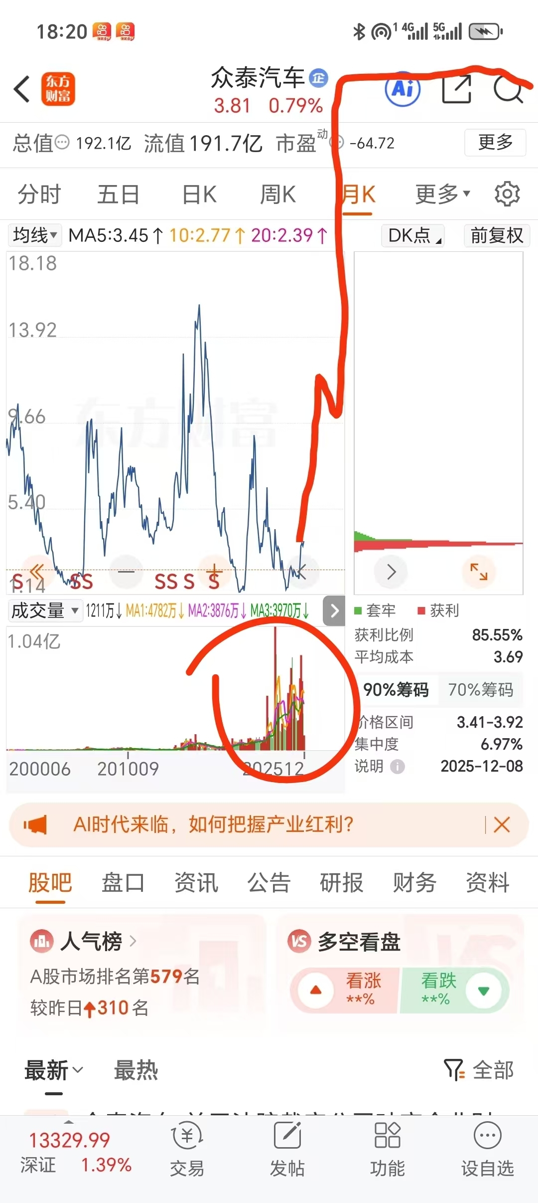 关于众泰汽车走势分析预测,月线量能一逐步放大,2030年有望突破200元