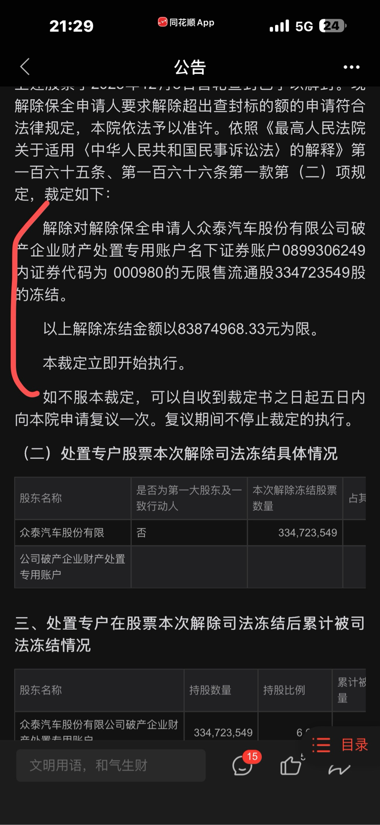 有人解释一下吗?我的理解是不是说除了83874968的金额解冻了。其他还是冻结的