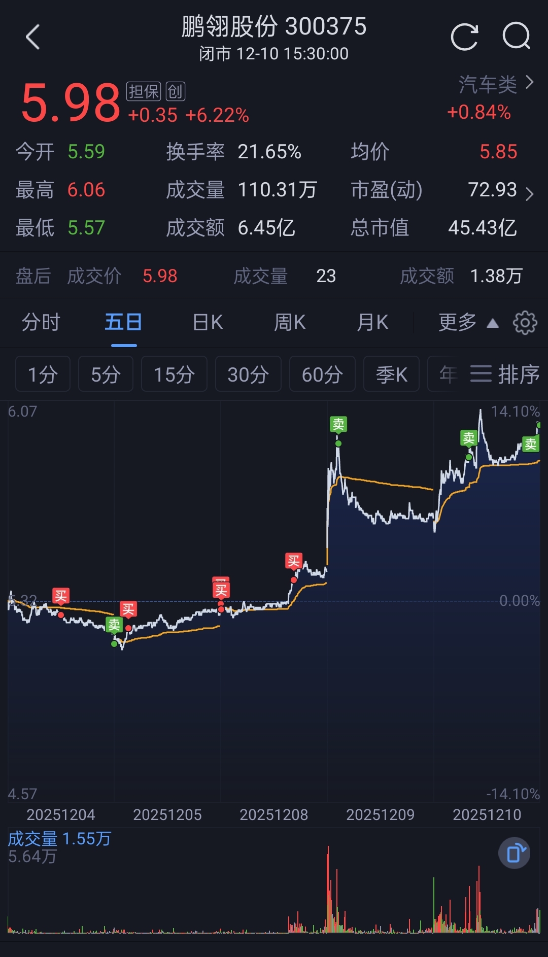 $众泰汽车(SZ000980)$ 鹏翎也涨了6个多点,我有什么不知足,众泰小仓位风险也小,一般散户不建议去刀尖舔血,看似危险其实一点不安全
