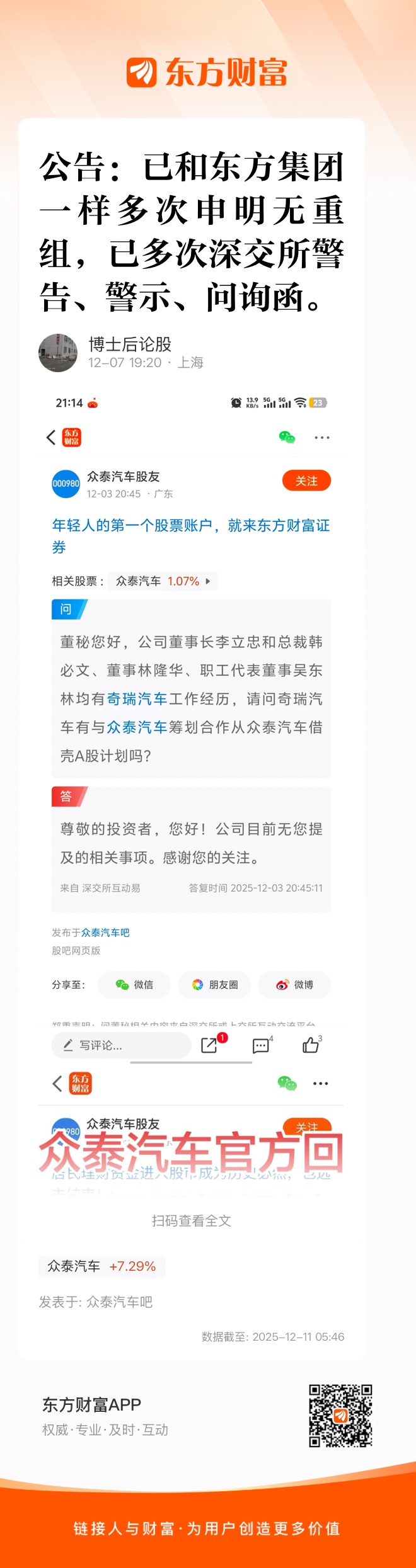 $众泰汽车(SZ000980)$  去看东方集团公告,多次深交所警示后退示.... 众泰汽车涉嫌三季报、年报造假……