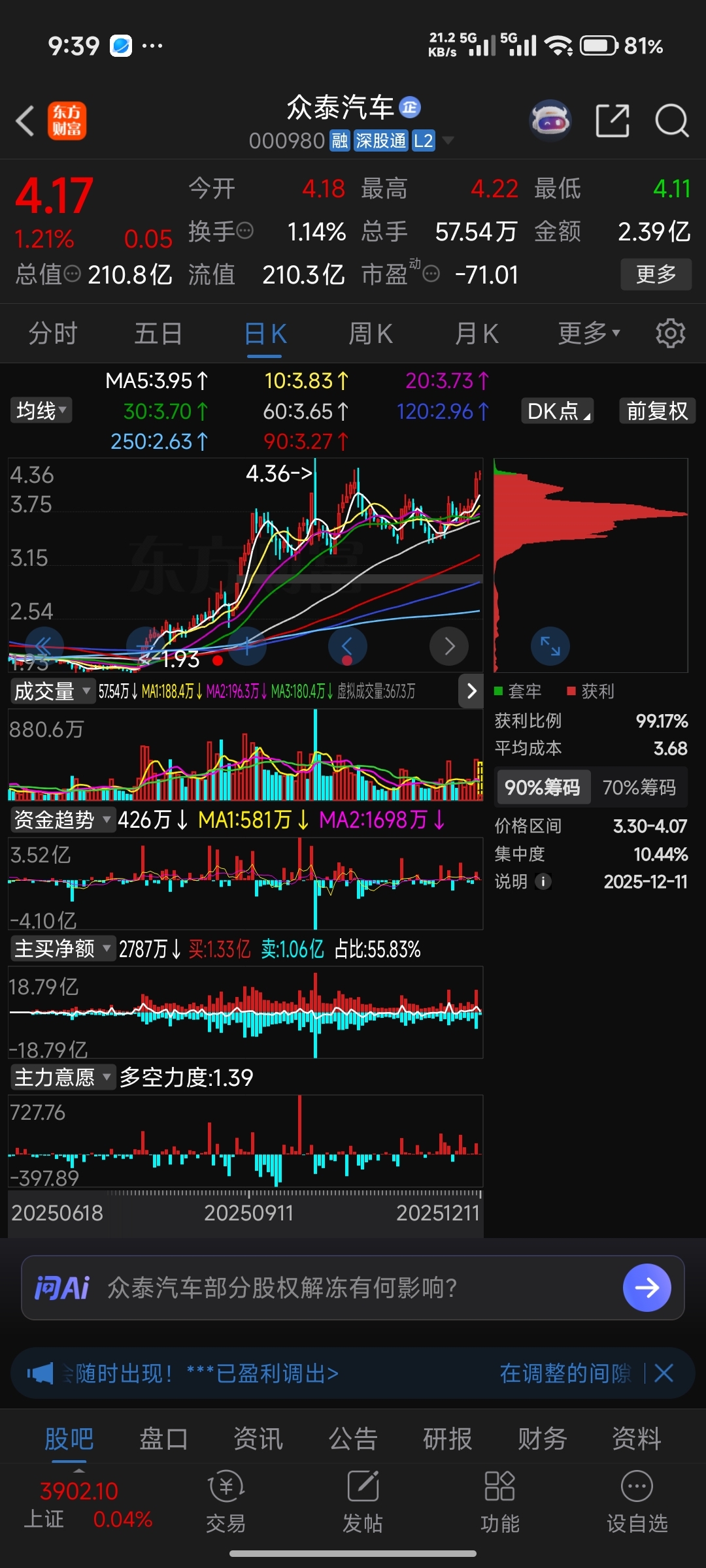 $众泰汽车(SZ000980)$ 四年半前9元+高地入的兄弟还有多少,大家报道,四年了别被甩下去了