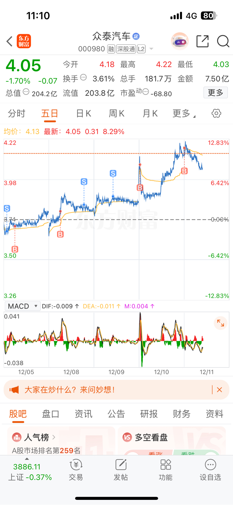 $众泰汽车(SZ000980)$ 有没有人能告诉我 买的时候是红的 卖的时候就是绿的 这是为什么