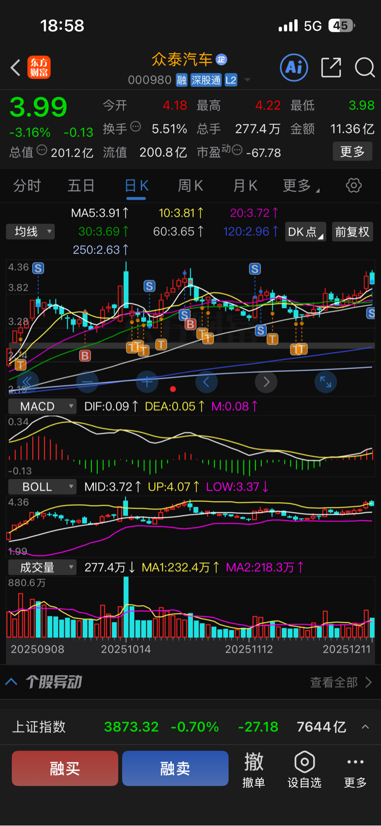 $众泰汽车(SZ000980)$ 前3次基本都在最高点减仓了,不知道这次怎么样。