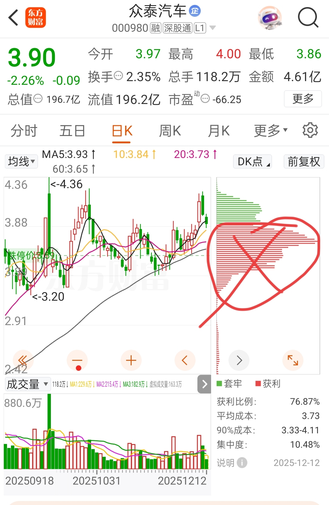 $众泰汽车(SZ000980)$ 下身获利盘筹码太重,主力是不会拉的,早跟你们说了,主力给散户抬轿让散户都赚钱了,主力吃什么?20258年度接近尾声证券机构开始回笼资金开始预算年度利润了。大道至简,就是这么简单