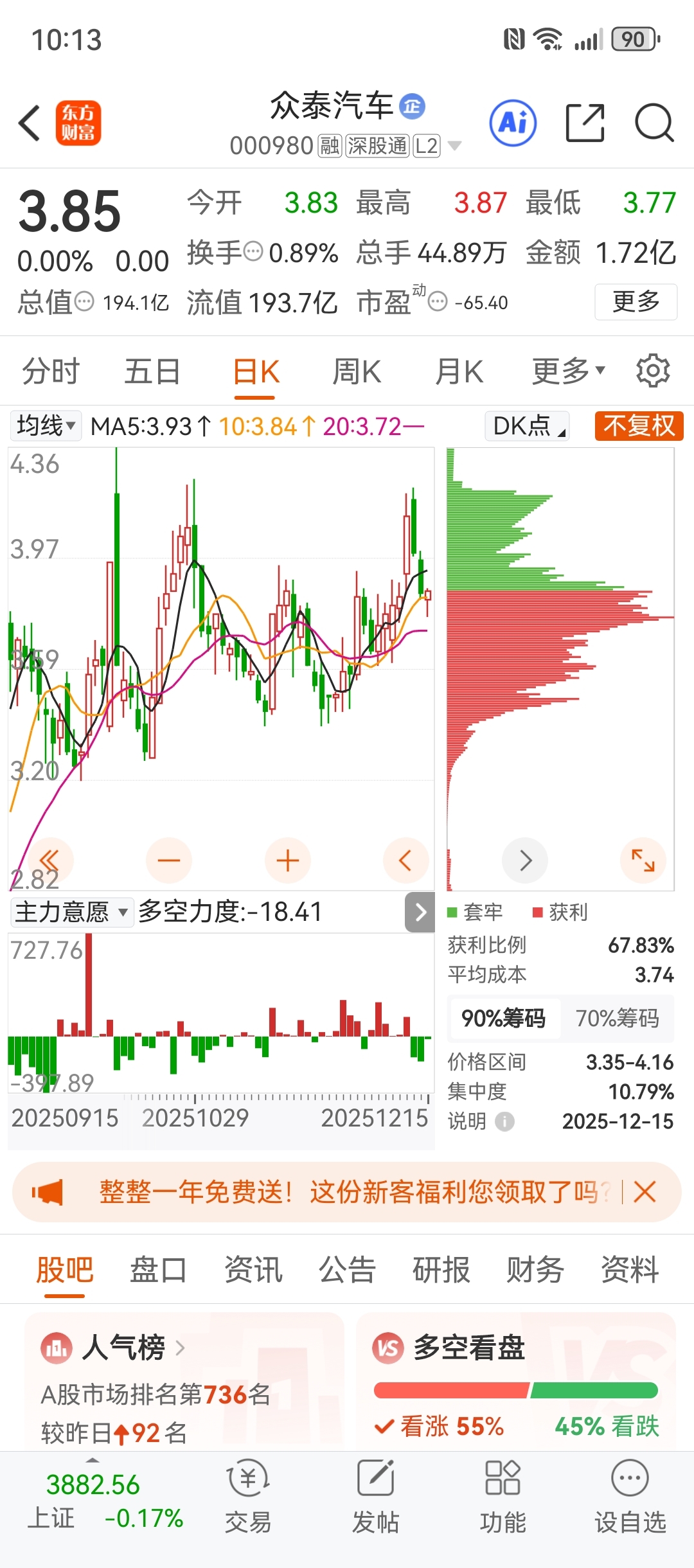 $众泰汽车(SZ000980)$ 筹码是越来越集中了,就看压到何时才能起飞!一切主力说的算!不猜测不预测,拿稳扶好坐等主力,机构,游资来给我抬轿吧!