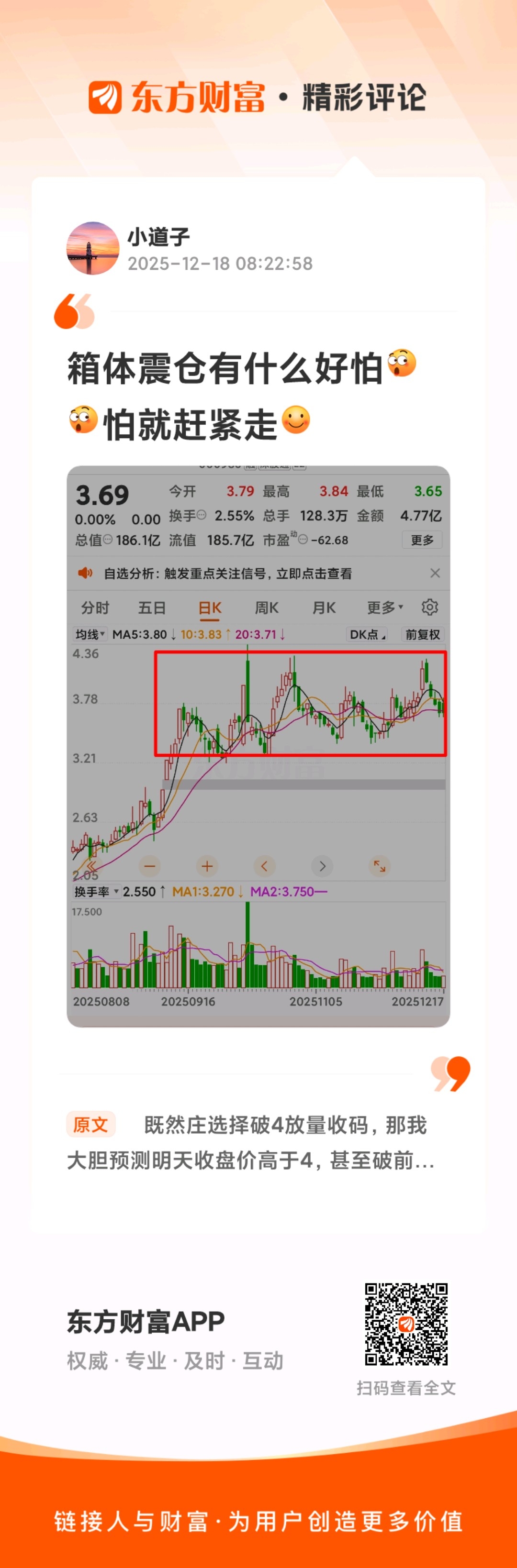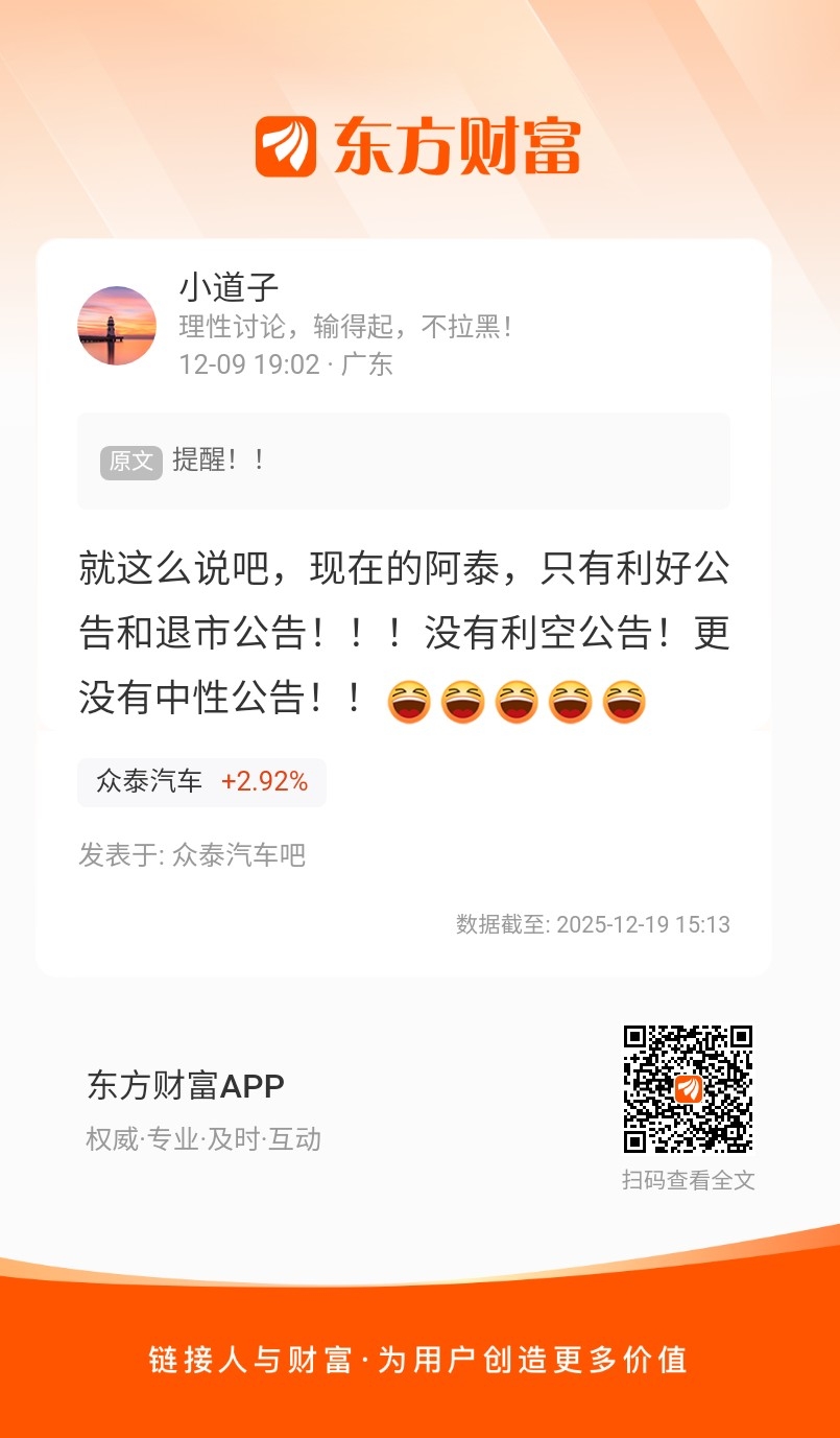 温馨提示: 1.根据《证券法》规定,禁止编造、传播虚假信息或者误导性信息,扰乱证券市场;2.用户在本社区发表的所有资料、言论等仅代表个人观点,与本网站立场无关,不对您构成任何投资建议。用户应基于自己的独立判断,自行决定证券投资并承担相应风险。《东方财富社区管理规定》
