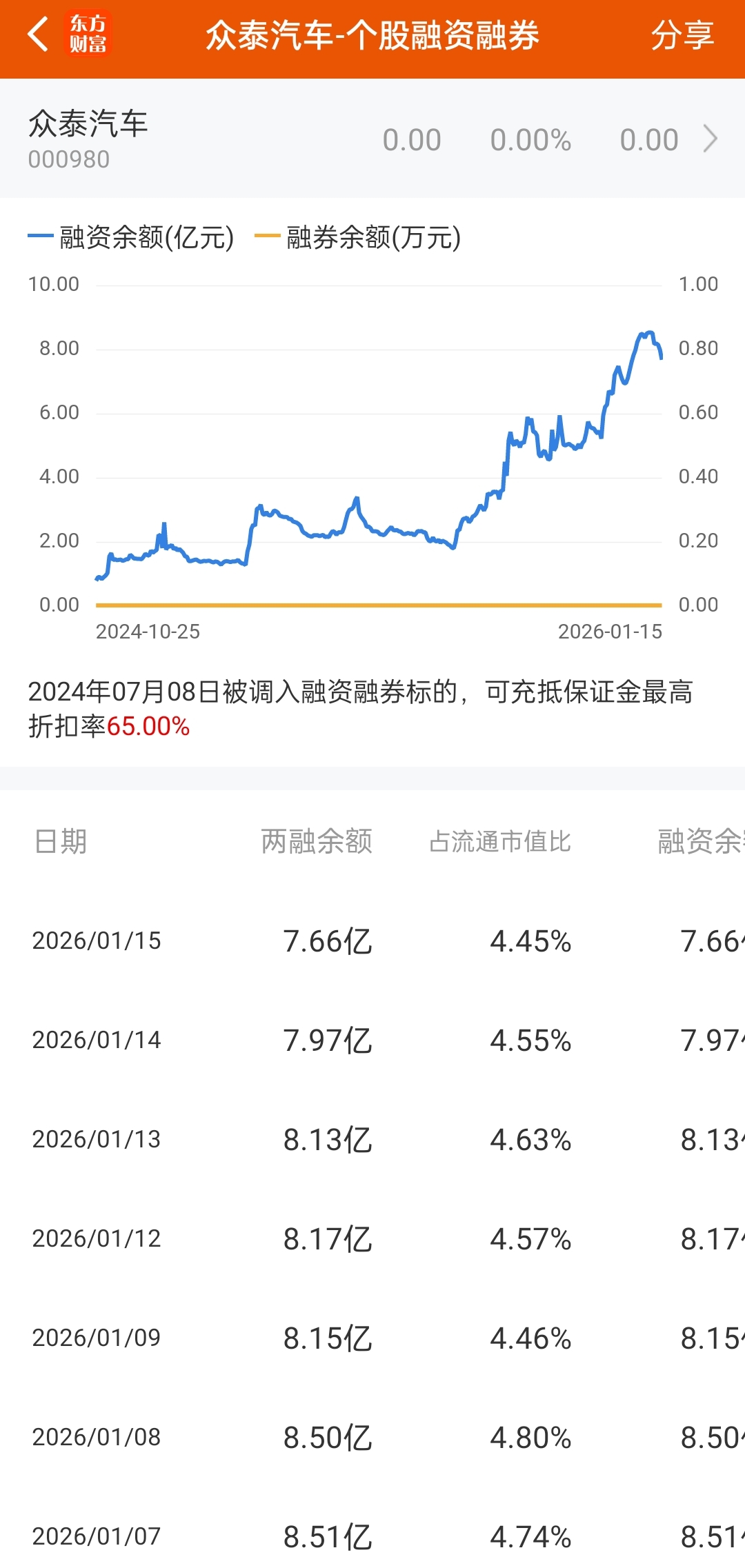 $众泰汽车(SZ000980)$ 融资保证金提高到100%,股票一跌打回原形