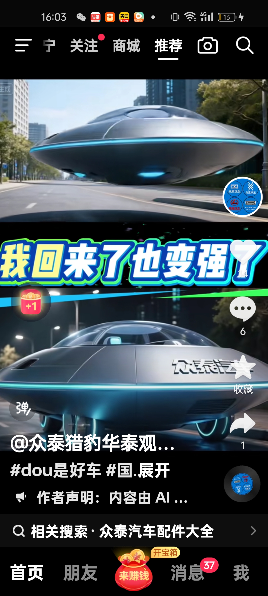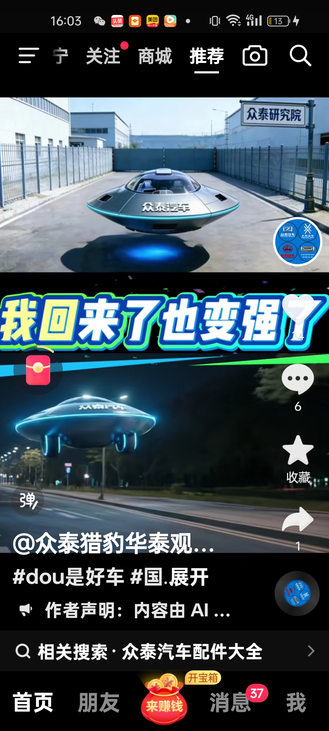 $众泰汽车(SZ000980)$ 众泰新能源汽车最新消息,2026年众泰新能源汽车可能制造空中飞行模式飞行器,板块转为A|高科技技术,众泰汽车研发院现在在招聘的高科技人才飞行器模具设计与制造这方面人才