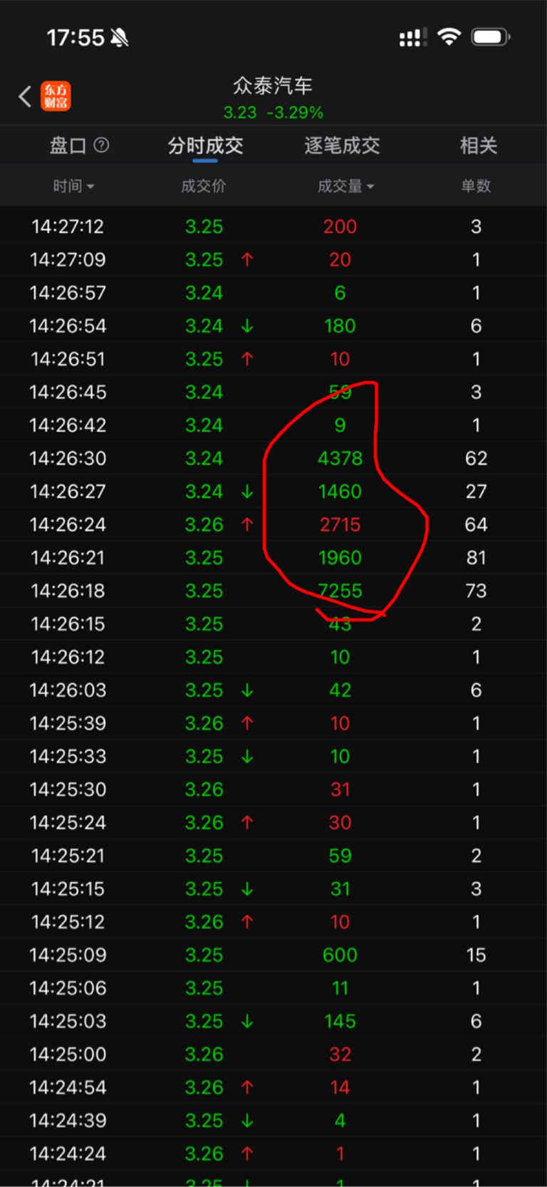 再来看看今天14:00到15:00这一个小时,全是大单卖出。