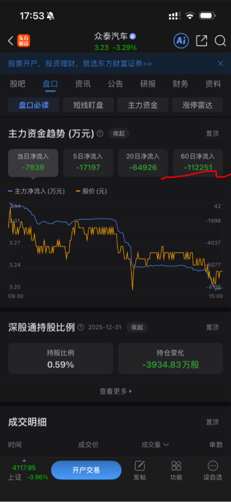$众泰汽车(SZ000980)$ 那些说我是收钱唱空的,我凭数据说话,60日资金流出11.22亿元!!!