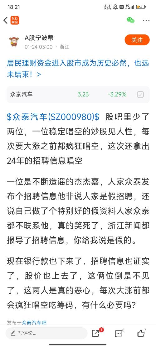 温馨提示: 1.根据《证券法》规定,禁止编造、传播虚假信息或者误导性信息,扰乱证券市场;2.用户在本社区发表的所有资料、言论等仅代表个人观点,与本网站立场无关,不对您构成任何投资建议。用户应基于自己的独立判断,自行决定证券投资并承担相应风险。《东方财富社区管理规定》