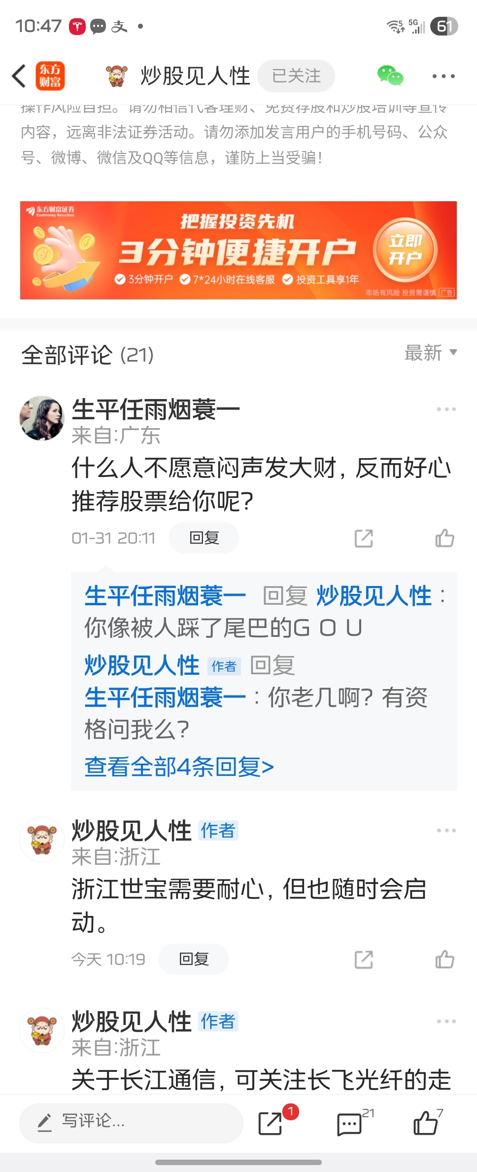 温馨提示: 1.根据《证券法》规定,禁止编造、传播虚假信息或者误导性信息,扰乱证券市场;2.用户在本社区发表的所有资料、言论等仅代表个人观点,与本网站立场无关,不对您构成任何投资建议。用户应基于自己的独立判断,自行决定证券投资并承担相应风险。《东方财富社区管理规定》