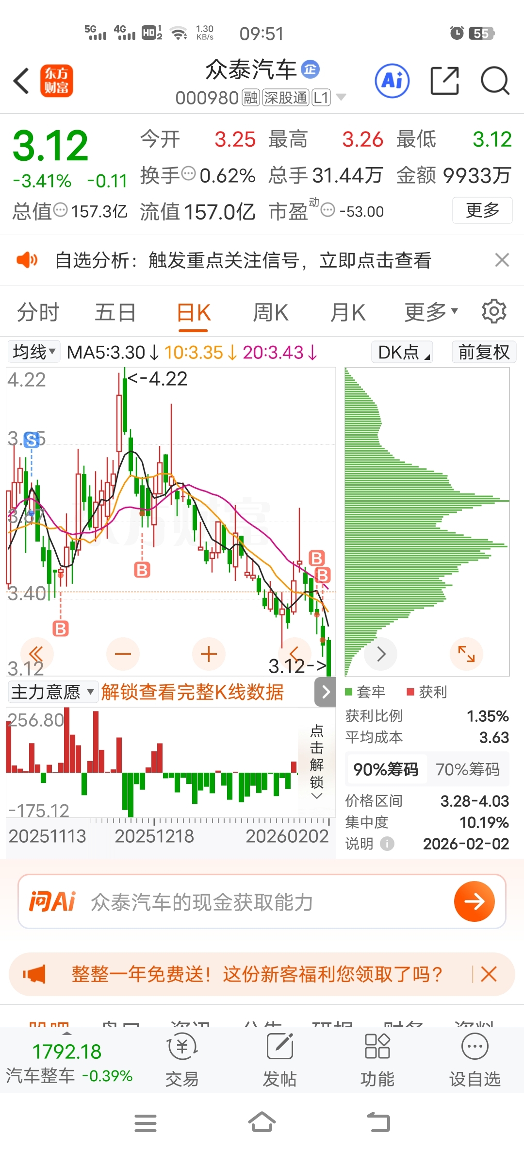 $众泰汽车(SZ000980)$ 我都不敢补仓了