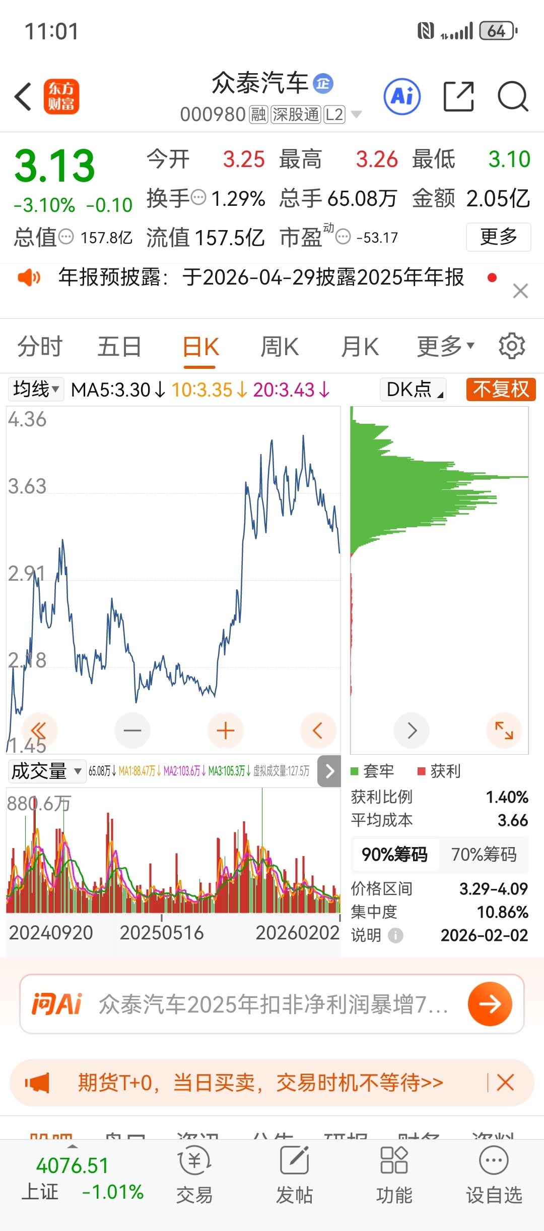 $众泰汽车(SZ000980)$ 全部套牢,,主力牛,今天倒数第二,比亚迪第一