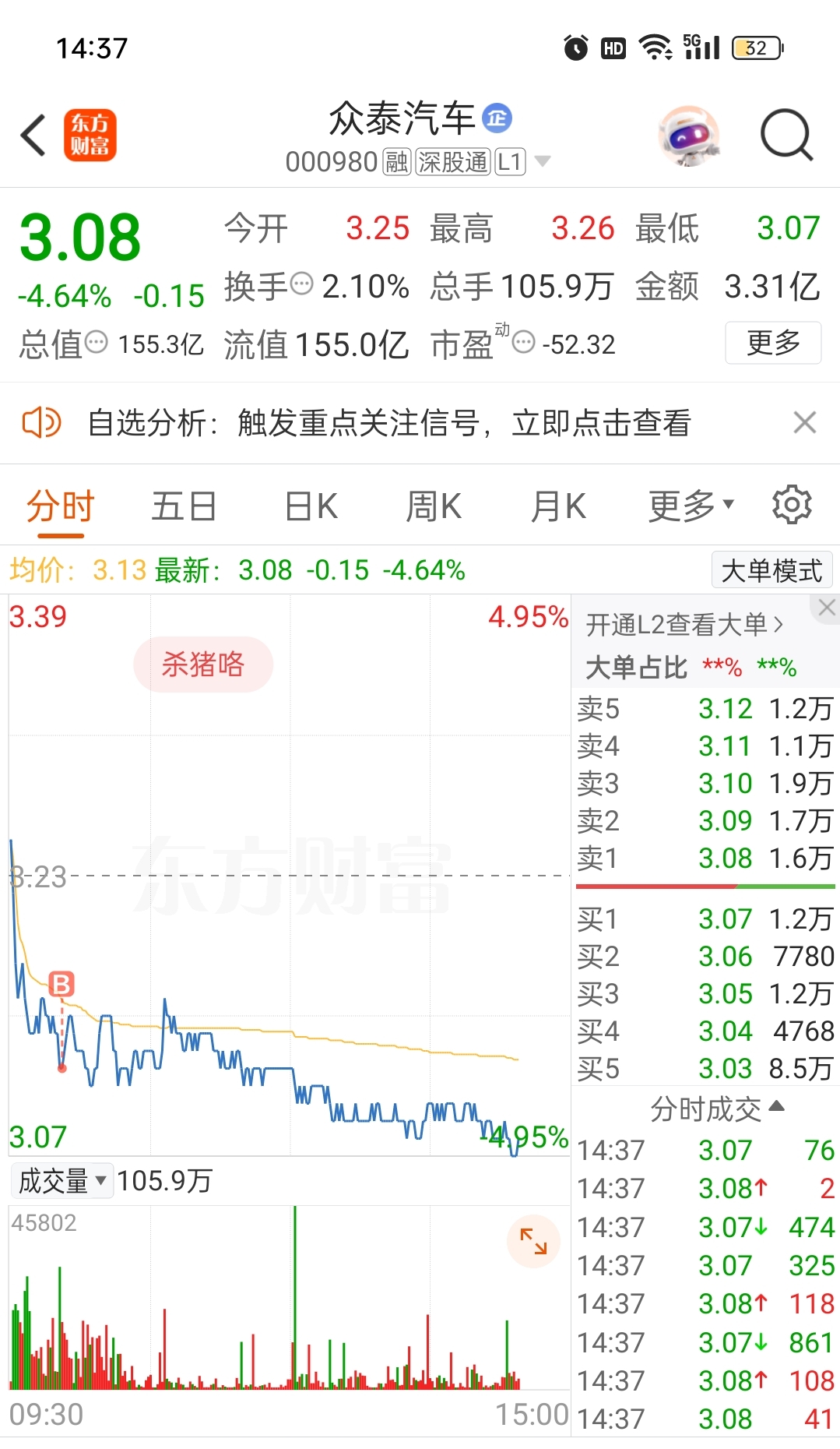 $众泰汽车(SZ000980)$ 3.03托了8万手,看来要跌破3.03啊,没有最低,只有更低