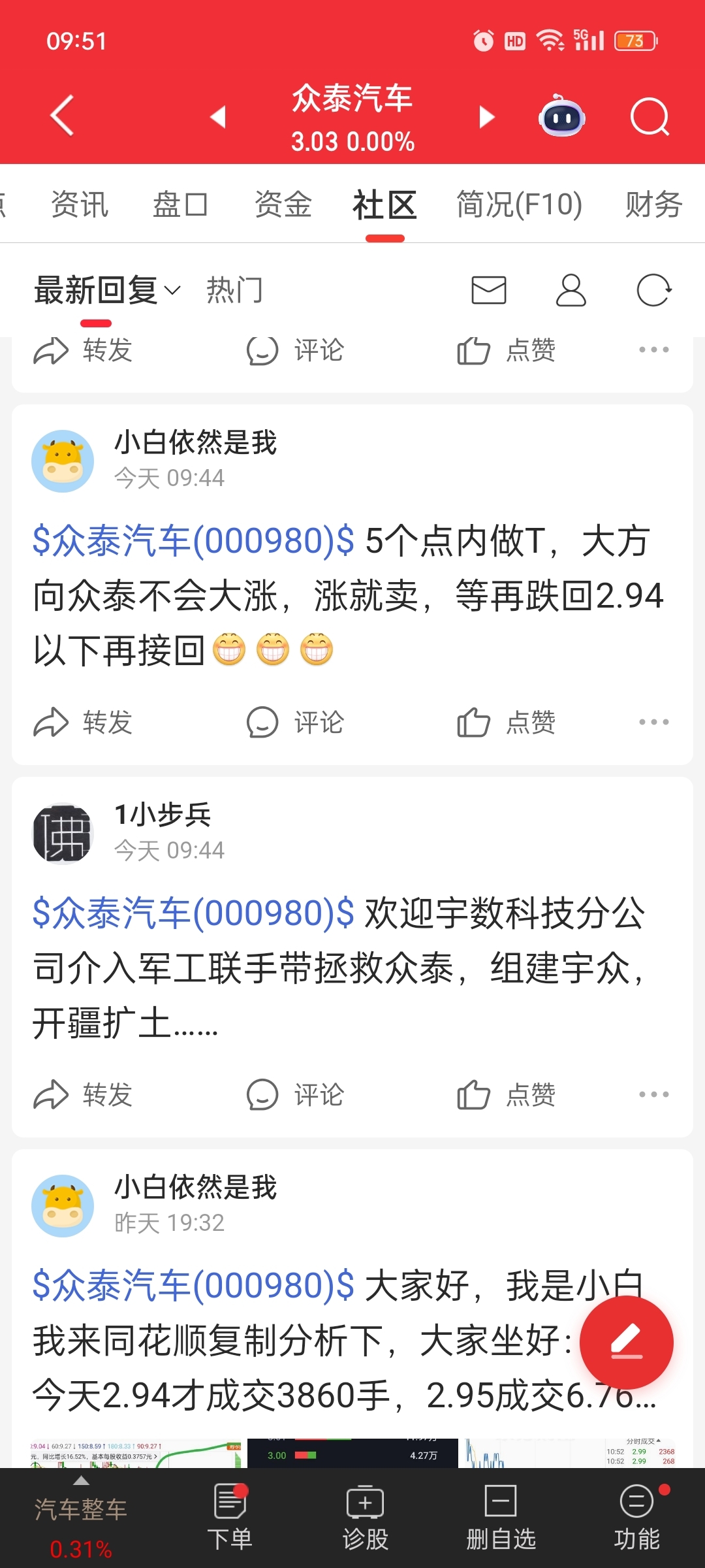 $众泰汽车(SZ000980)$ @痛苦的众泰 中这是我同花顺的账号,同花顺都没什么人发帖
