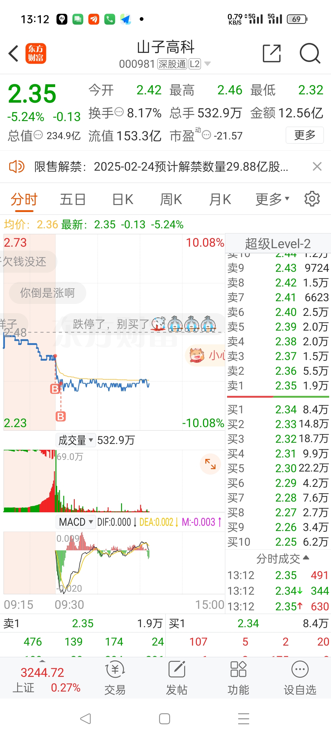 $山子高科(SZ000981)$ 昨天顶板买入的,今天被收割7个点了