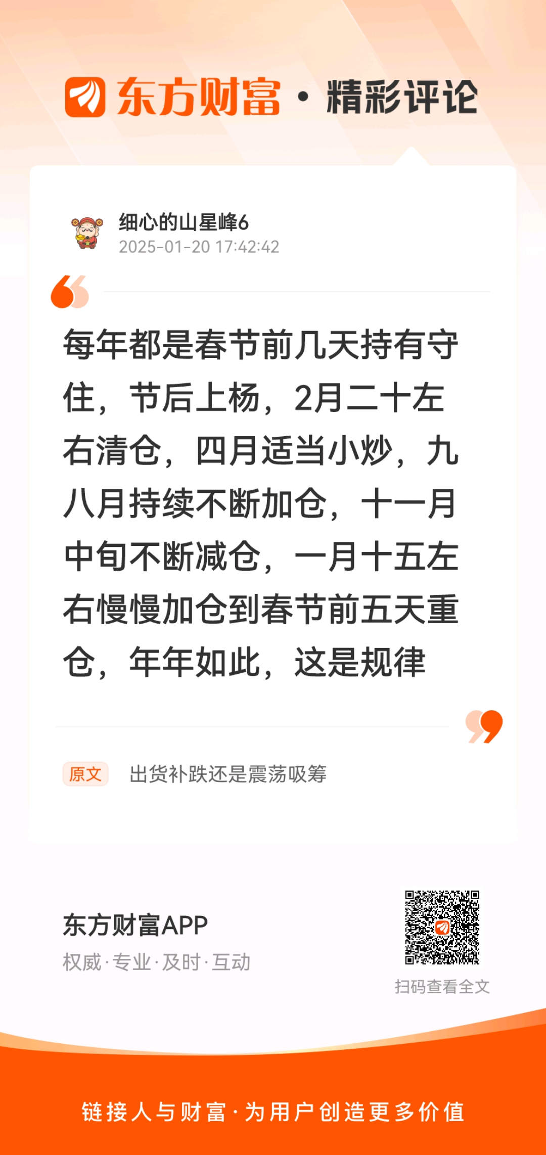 2024业绩预告会是个什么样子呢?自愿性公告销量,就自愿了俩月,后面就不自愿了?赔了怕踩踏?赚了怕进来吃你肉?大家怎么看,我觉得2024盈利总体还算不错,有意外惊喜,大资金已经提前知道了,咱们只能干等公告,我个人觉得是一份不错的的营收公告,还是期待一下吧。