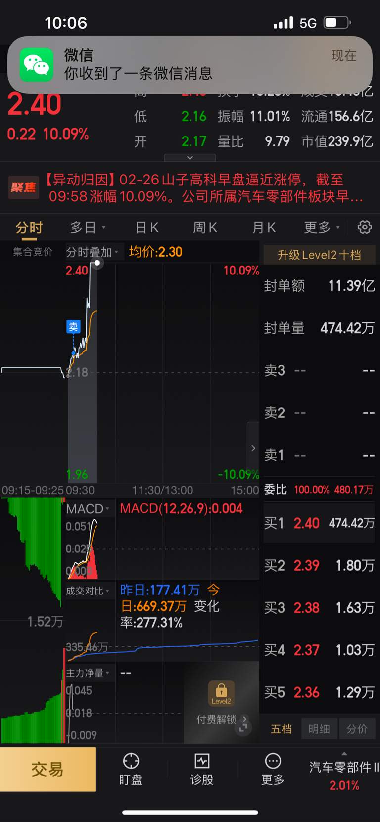 $山子高科(SZ000981)$ 2.22卖了,只赚一点,没那个命没办法,去买别的了