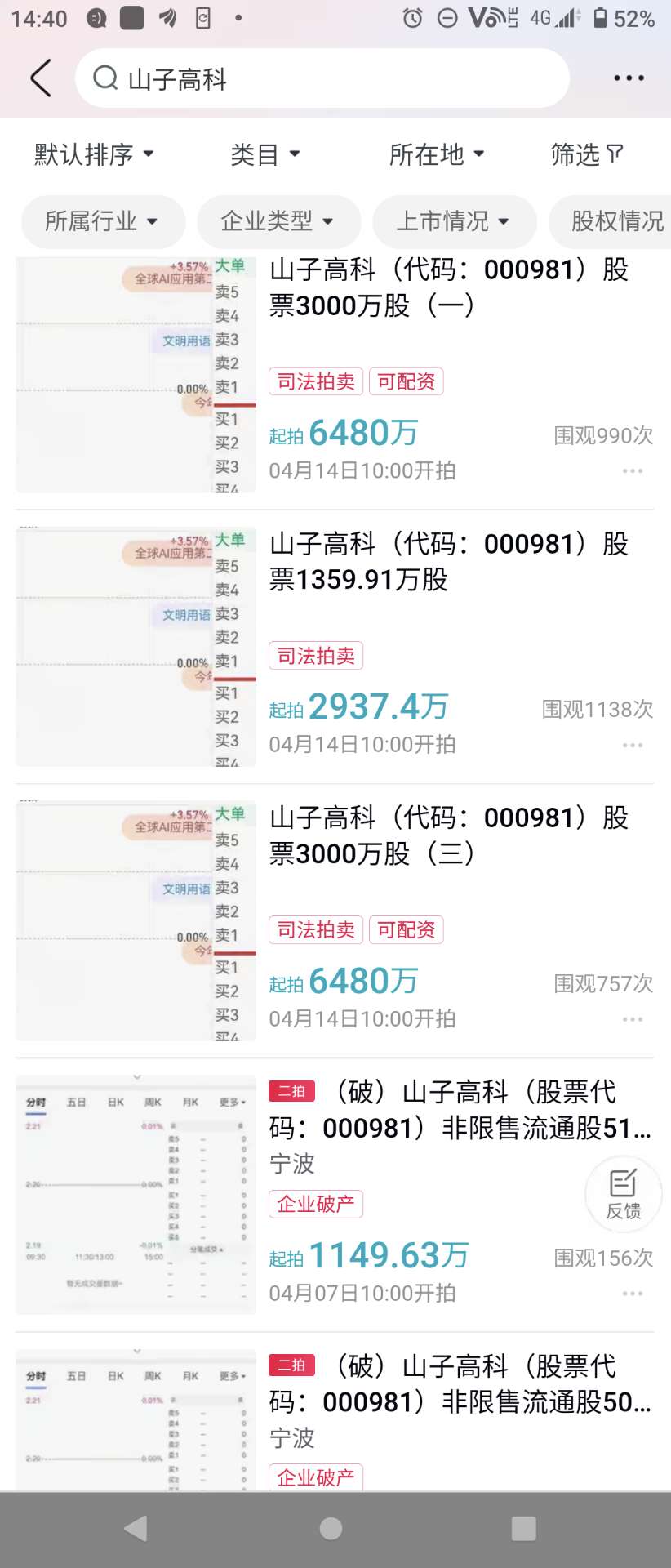 $山子高科(SZ000981)$ 拍卖无人竞价啊,均价2.16每股。