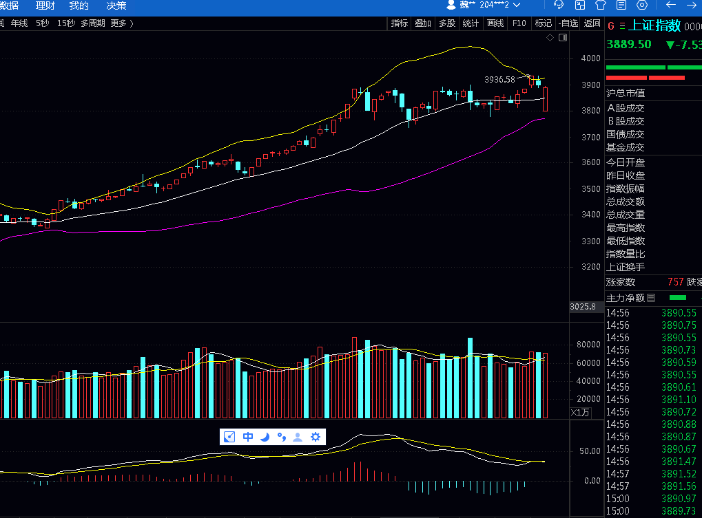 上海大盘目前可以看成上涨中继形式,目标依然是冲击4000大关