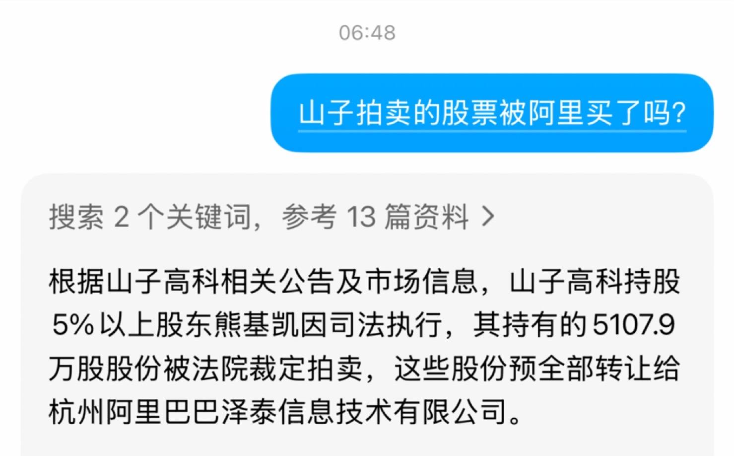 $山子高科(SZ000981)$ 现在知道为什么28号拍卖公告,29日30日涨停了吗?拍卖要看谁接手,走了个有问题的股东,接手的是有实力的股东,那是天大的利好,现在被阿里接管,只能说未来可期。不懂的去问下豆包吧。