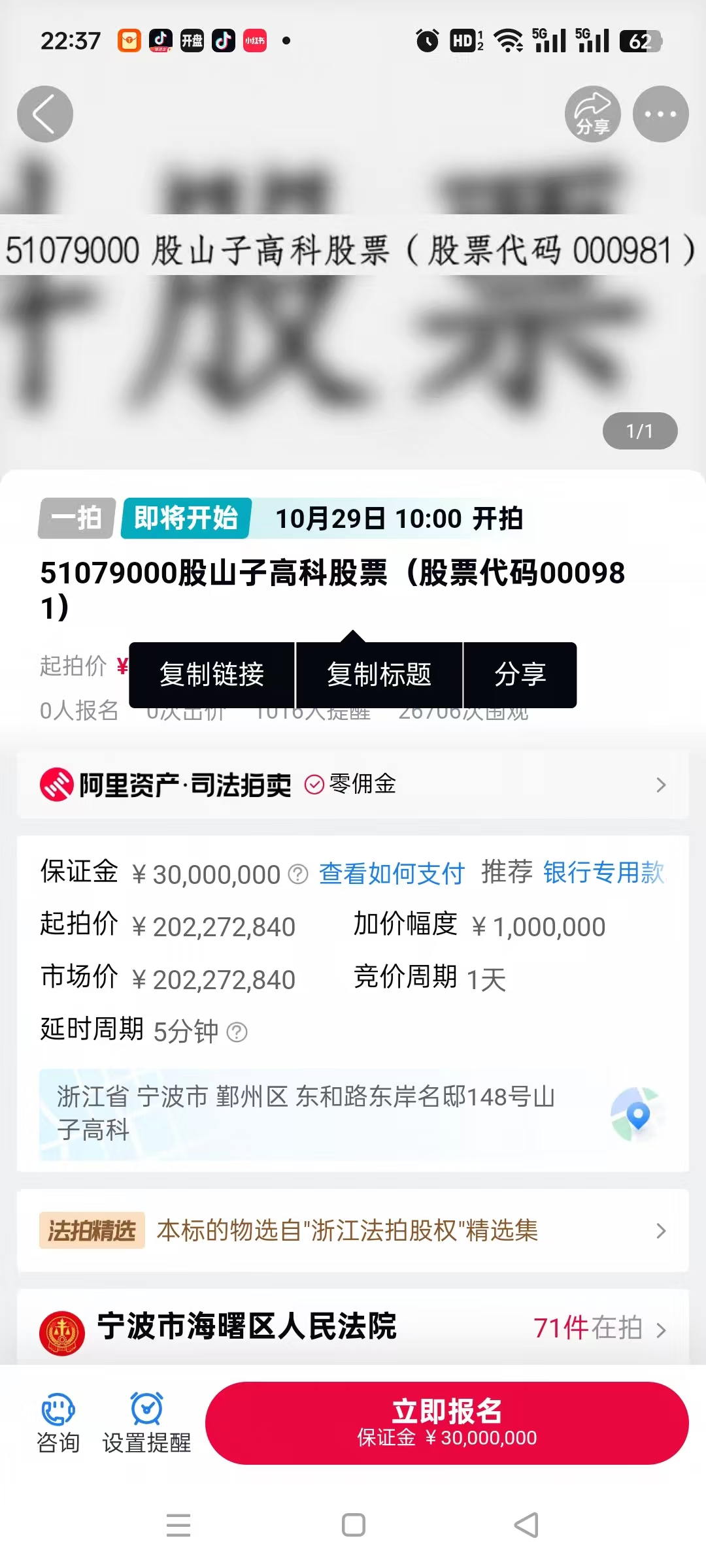 $山子高科(SZ000981)$ 大家都不要卖,股票价格一定要控制在3.96以上,不然山子高科的这一单股票拍卖业务要流拍了!