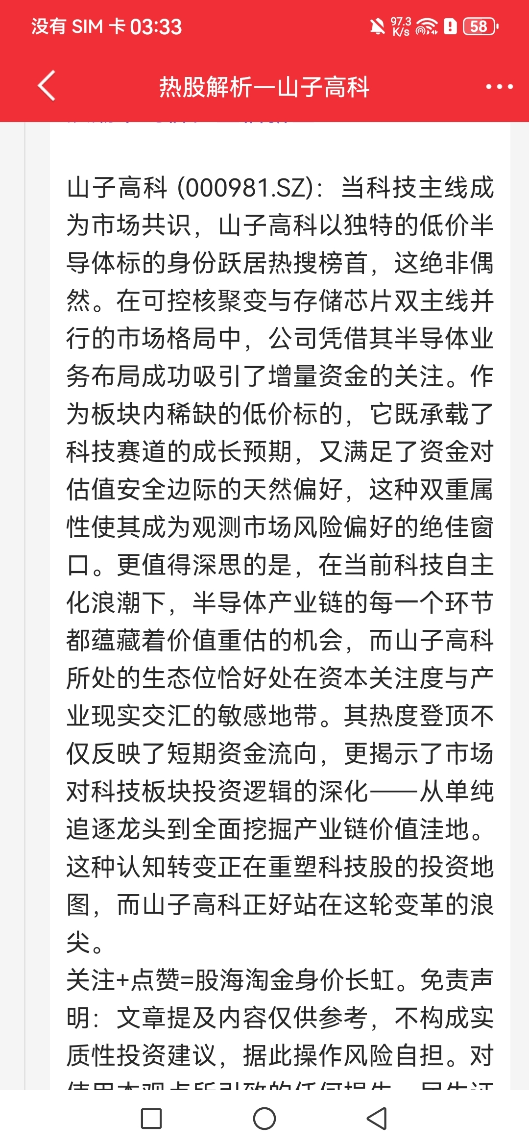 $山子高科(SZ000981)$
