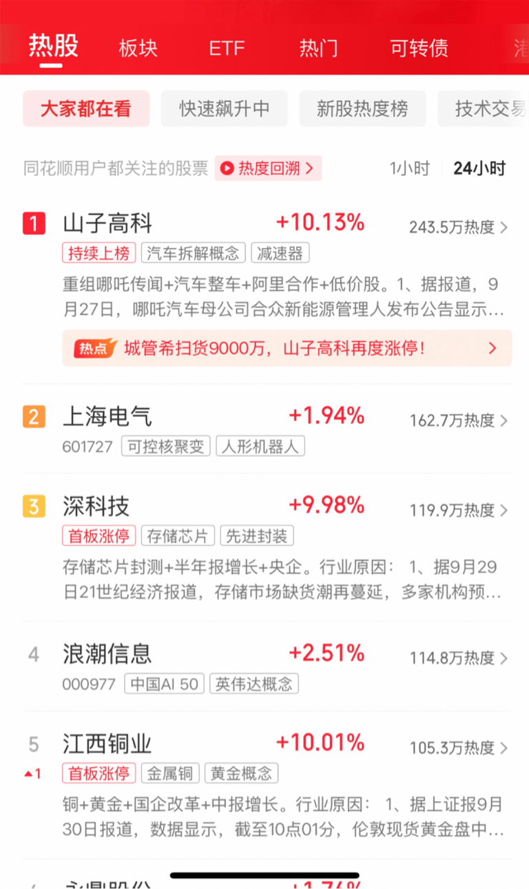 $山子高科(SZ000981)$ 某同24小时榜单,依旧是霸榜第一的山皇!