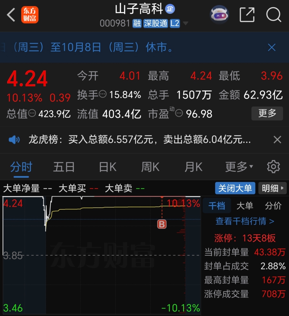 $山子高科(SZ000981)$ 终于挤上了涨停车