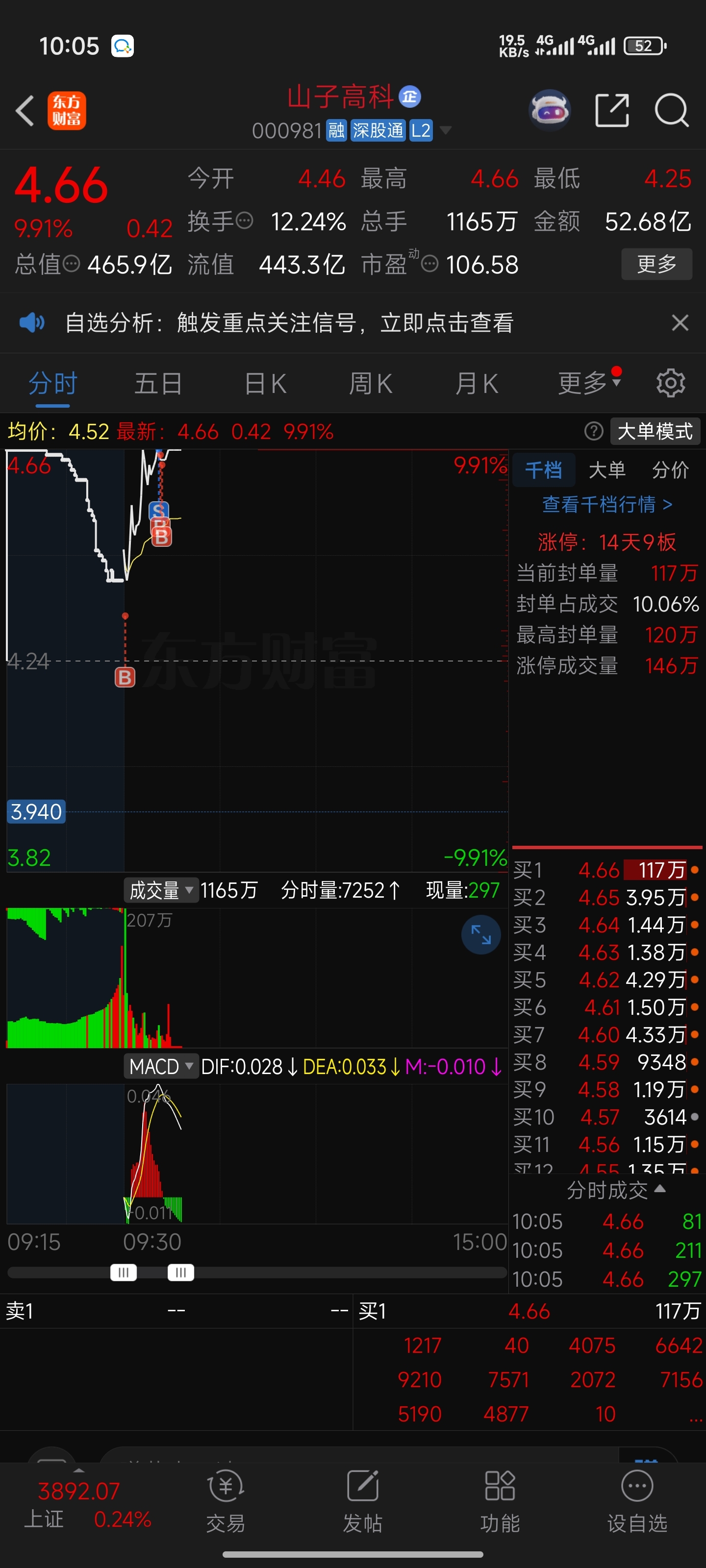 $山子高科(SZ000981)$ 加3层仓位,顺便做个2分T明天希望继续吃