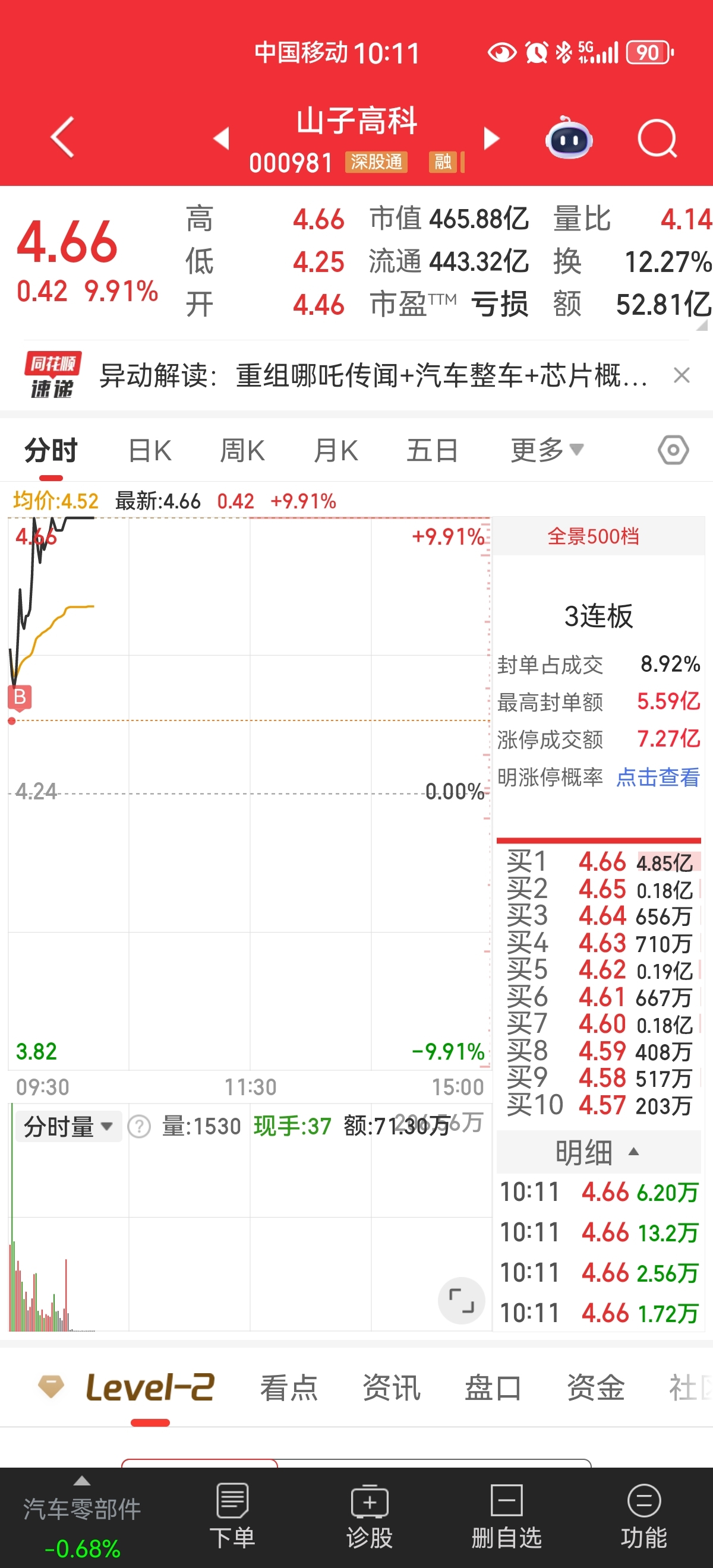 $山子高科(SZ000981)$ 差点让我挂4.25买到