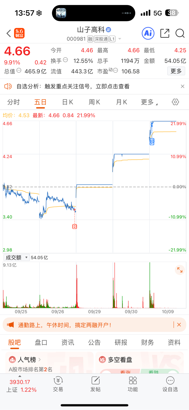 $山子高科(SZ000981)$ 哎想做T的 T飞了