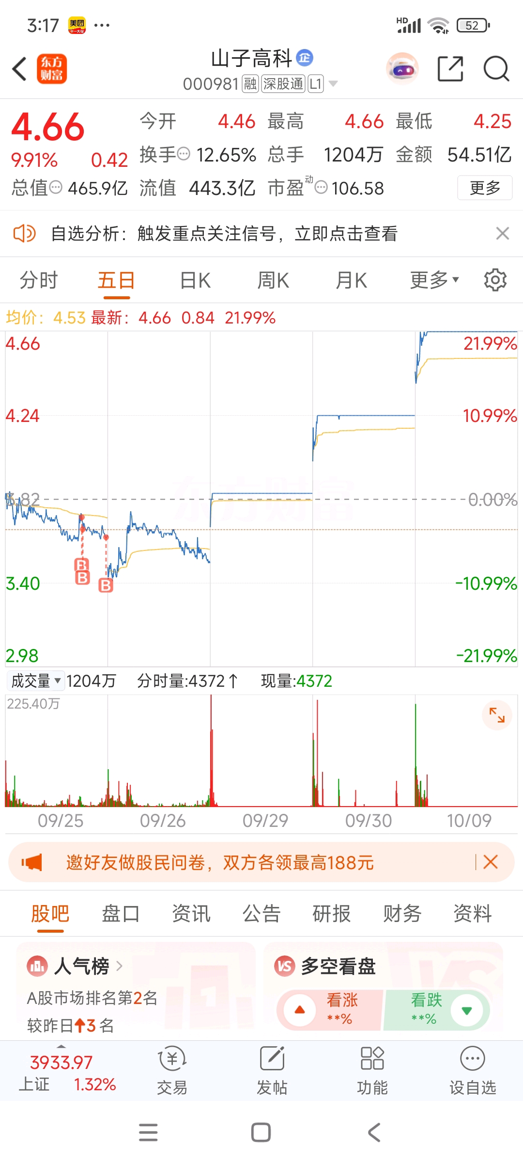 $山子高科(SZ000981)$ 也不知道那天是怎么了,就是想买它买它
