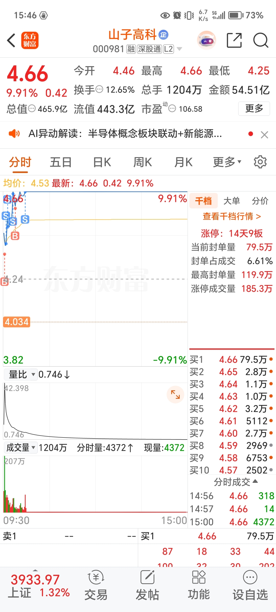 $山子高科(SZ000981)$ 给我吓得差不多卖完了