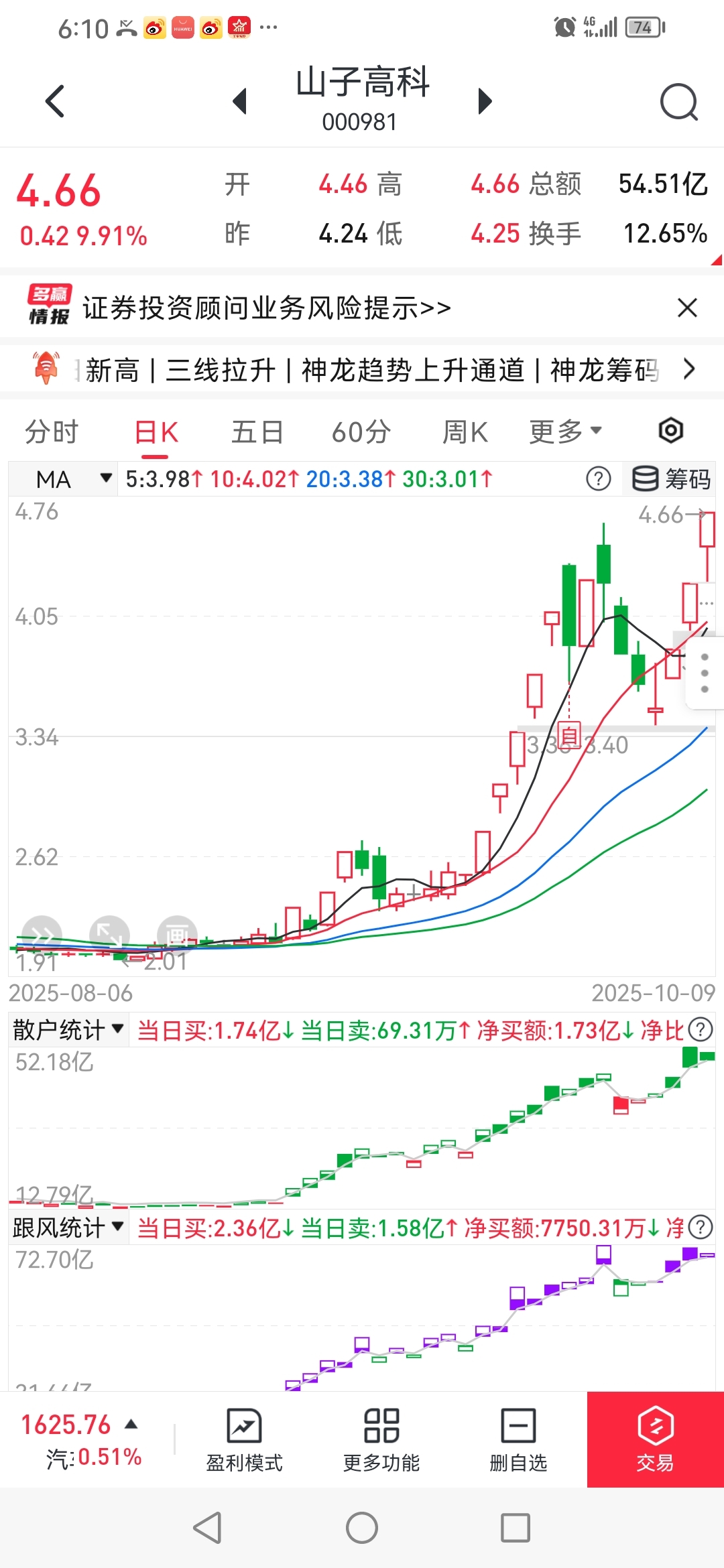 $山子高科(SZ000981)$ 只管买,散户不用出货了,这是大中单散户买的吗?为何,有一批东方财富小单一买就封不住了呢?经传多赢手机版数据短线王123元
