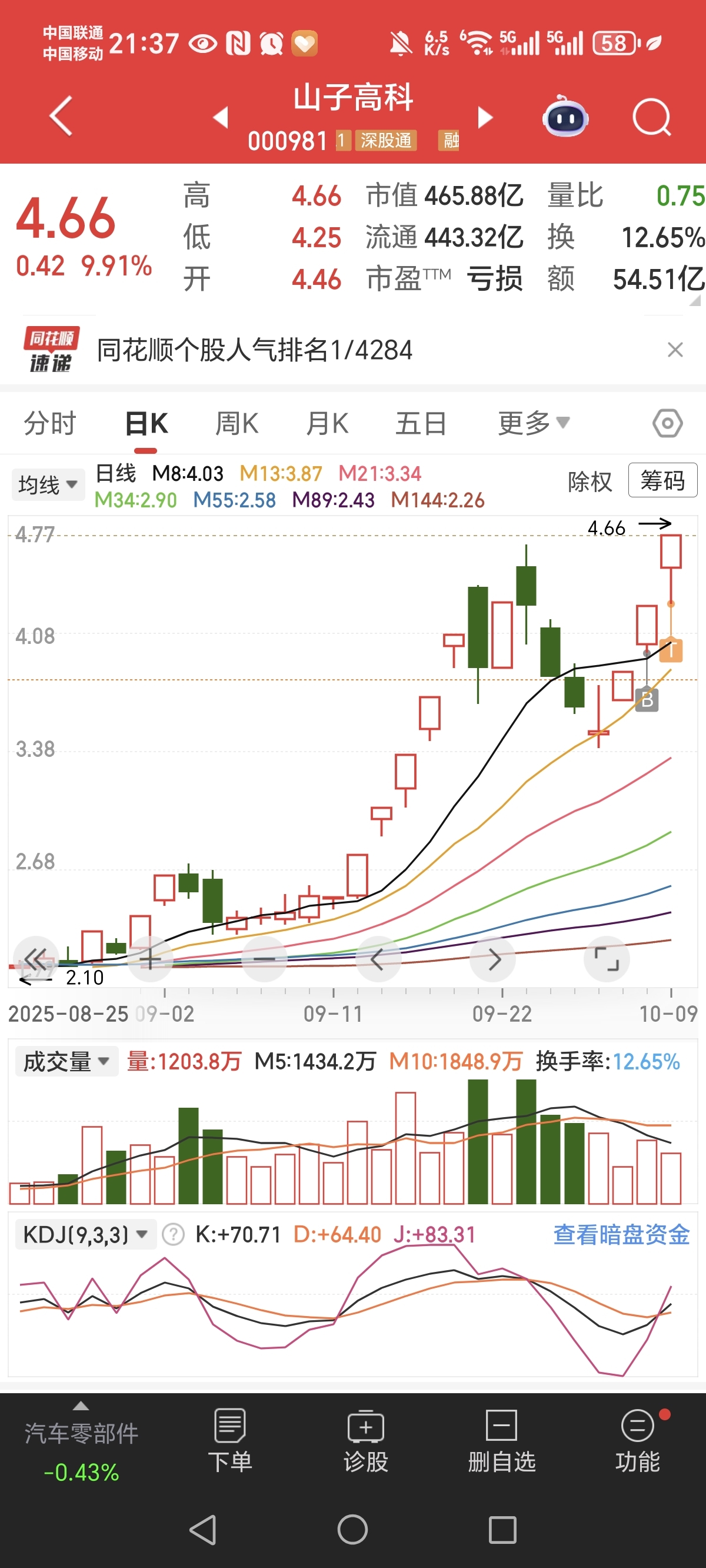 $山子高科(SZ000981)$ 明天继续做T