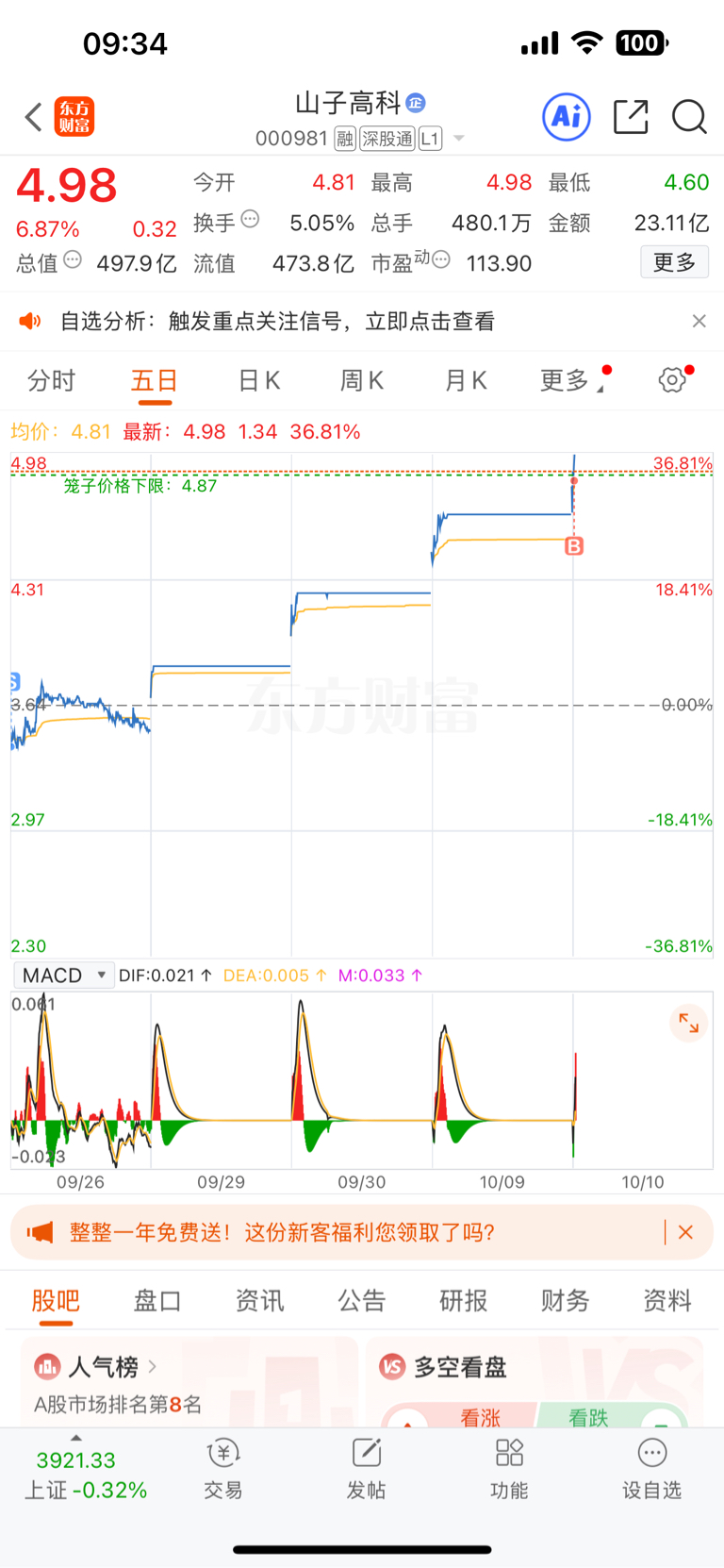 $山子高科(SZ000981)$ 太气人了,买一手看看