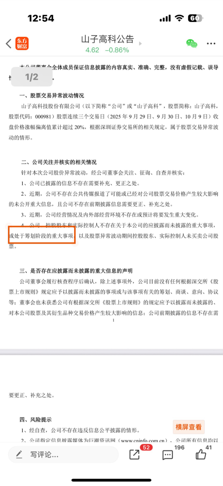 $山子高科(SZ000981)$ 一地鸡毛,已经说明了,不然信披违规!