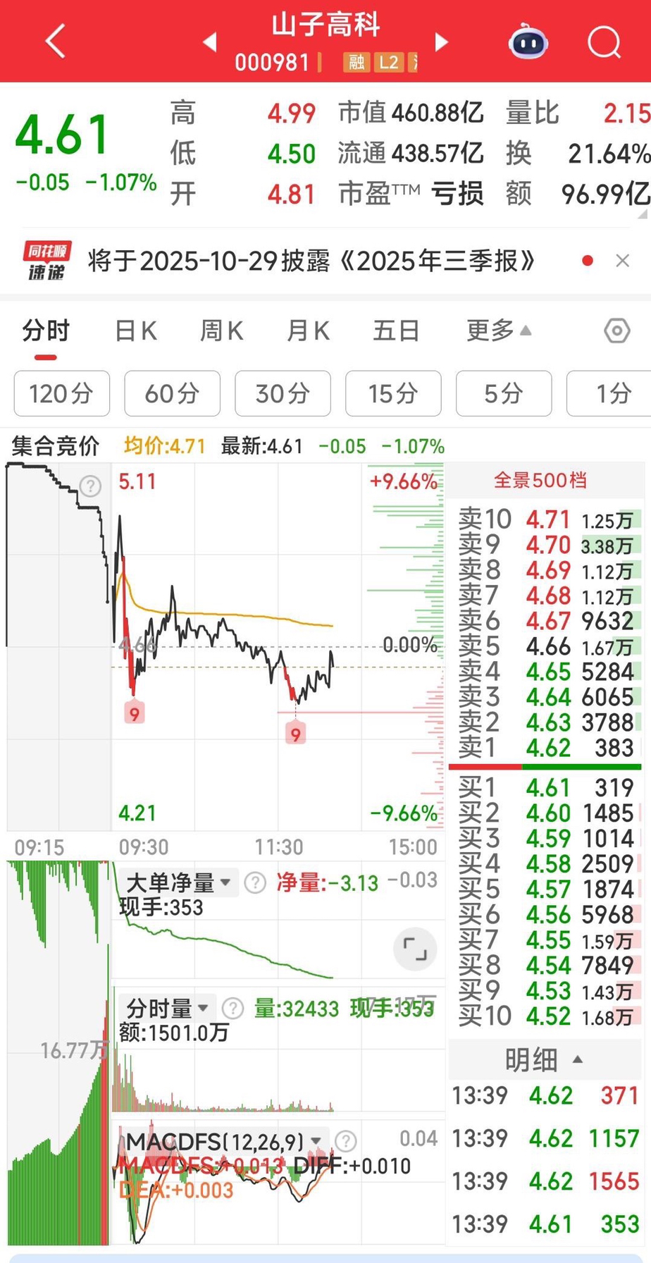 为什么暂出了重仓的山子高科?因为今天主力大单砸出不少。