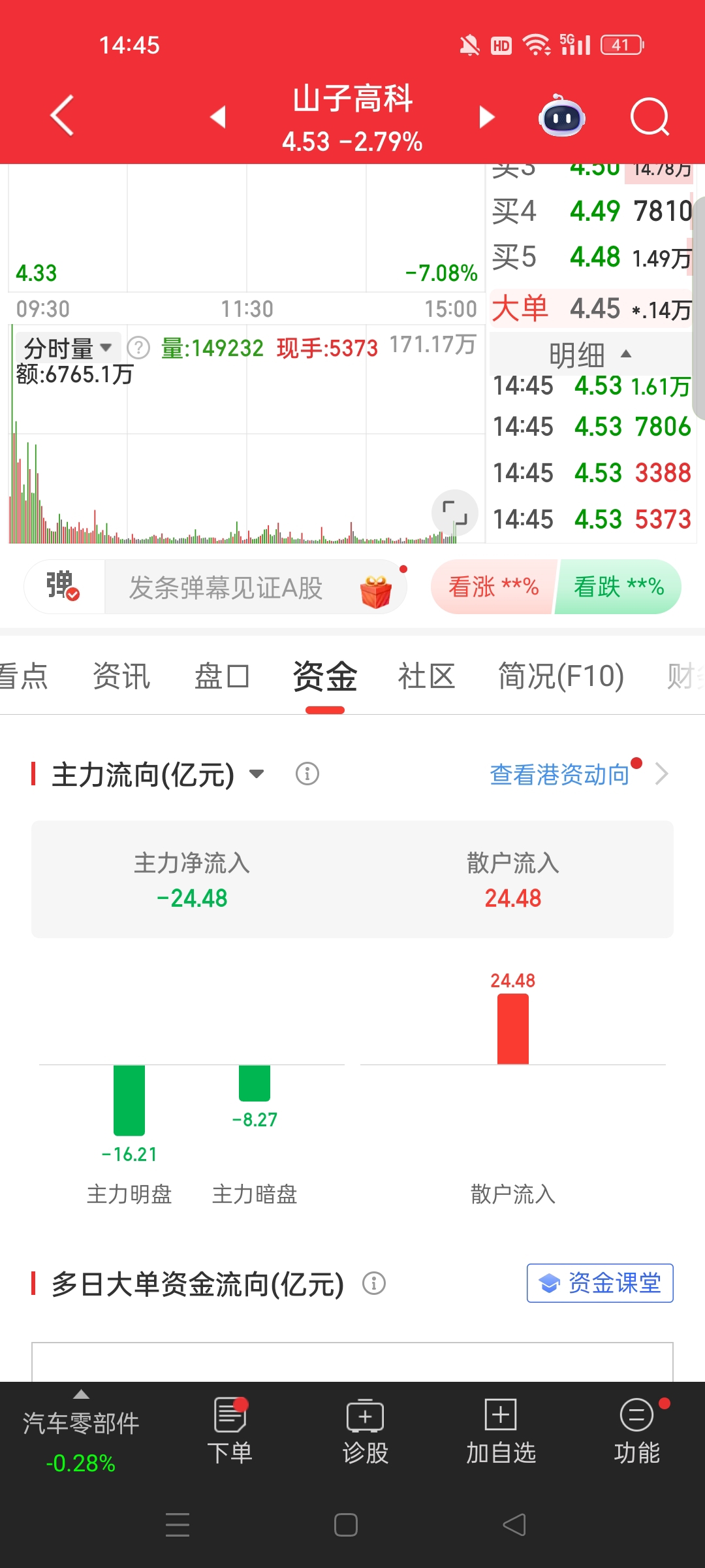 $山子高科(SZ000981)$ 资金疯狂流出,还玩个嘚