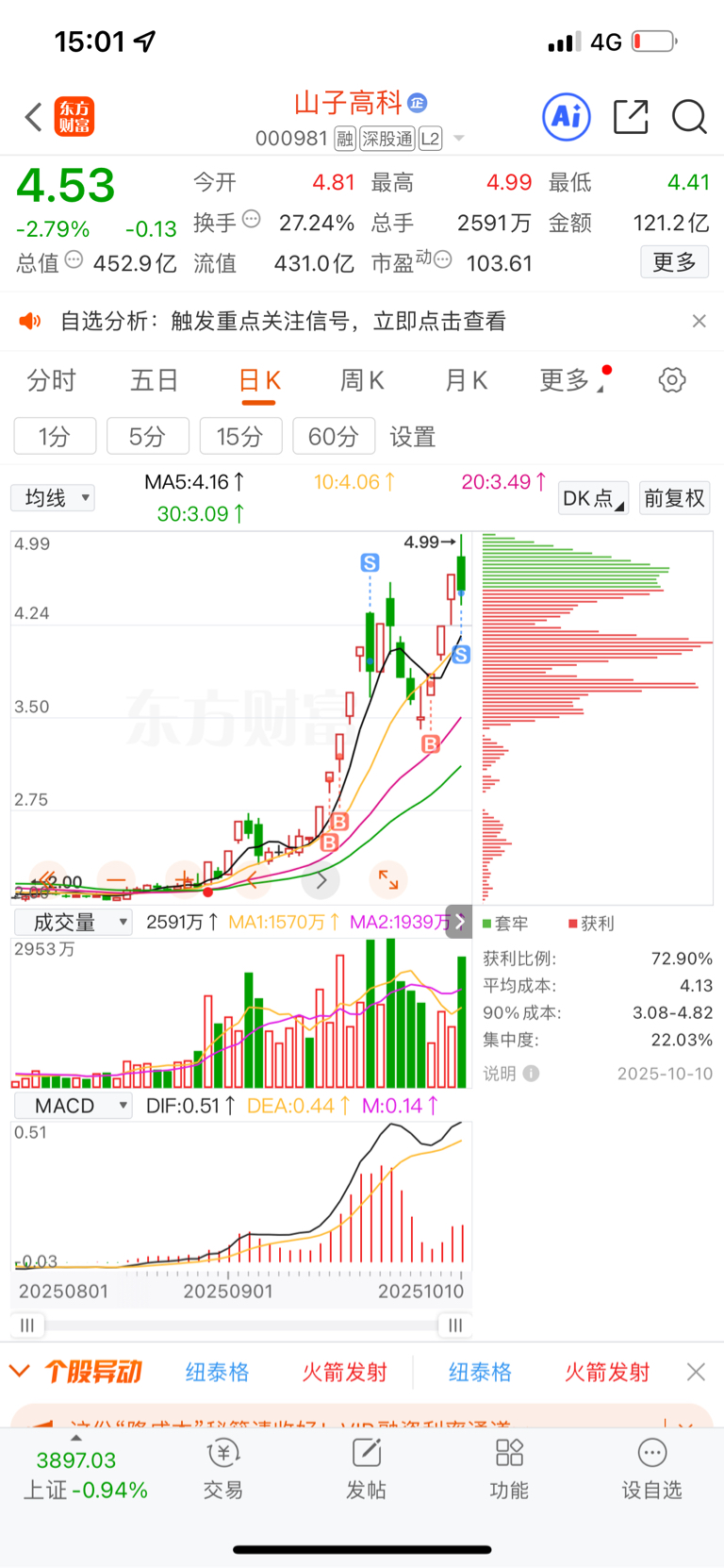 $山子高科(SZ000981)$ 满仓压力太大,看不懂今天的分时图,认知有限,先撤了,大家发财