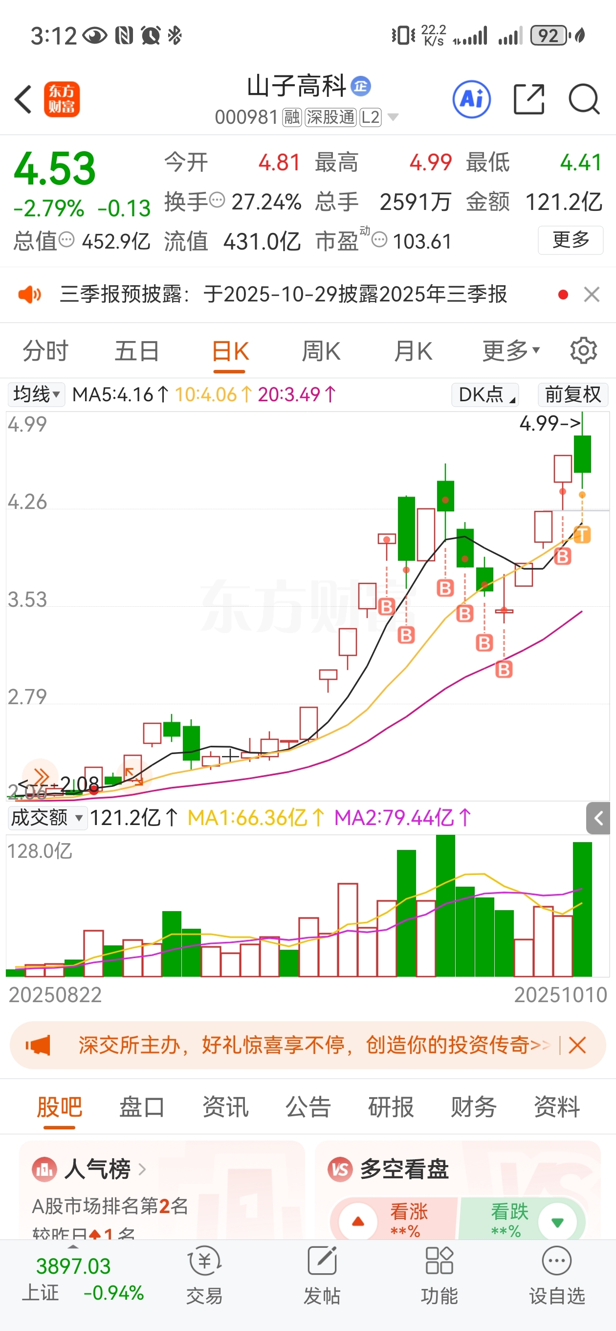 $山子高科(SZ000981)$ 今天这量太大了,我只能先走了,在车上的别骂人。调整一下我再来!!!