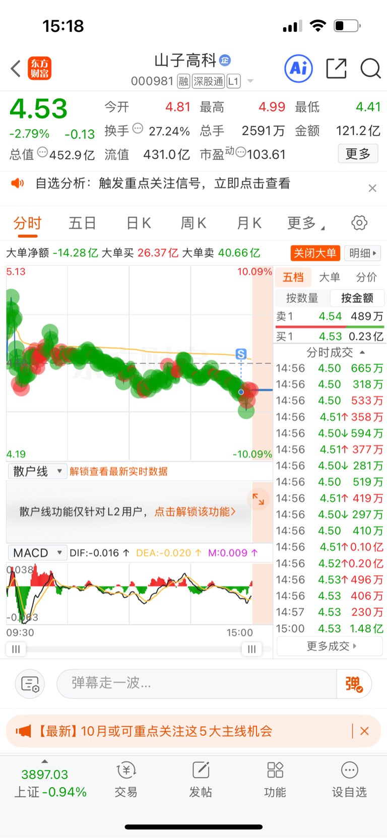 $山子高科(SZ000981)$ 哎吃不上三个菜尾盘走,今天相差10个点