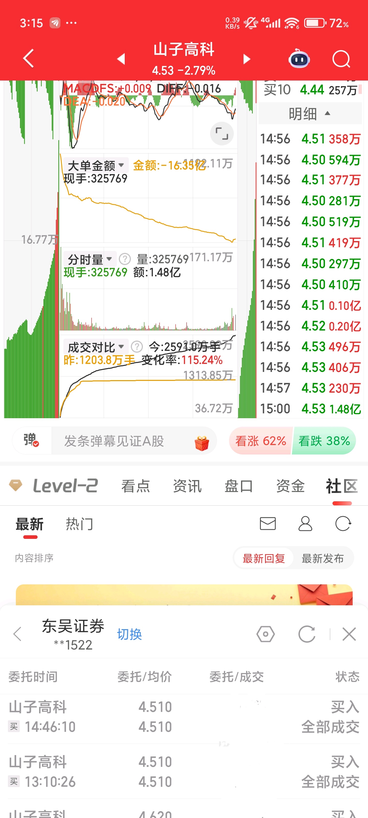 $山子高科(SZ000981)$ 好久没有这种直觉了,尾盘全仓干进去了,上一次有这种冲动的行为是去年的常山北明13块的时候也是全仓干进去,结果本金直接翻倍,但愿这次别让我失望!