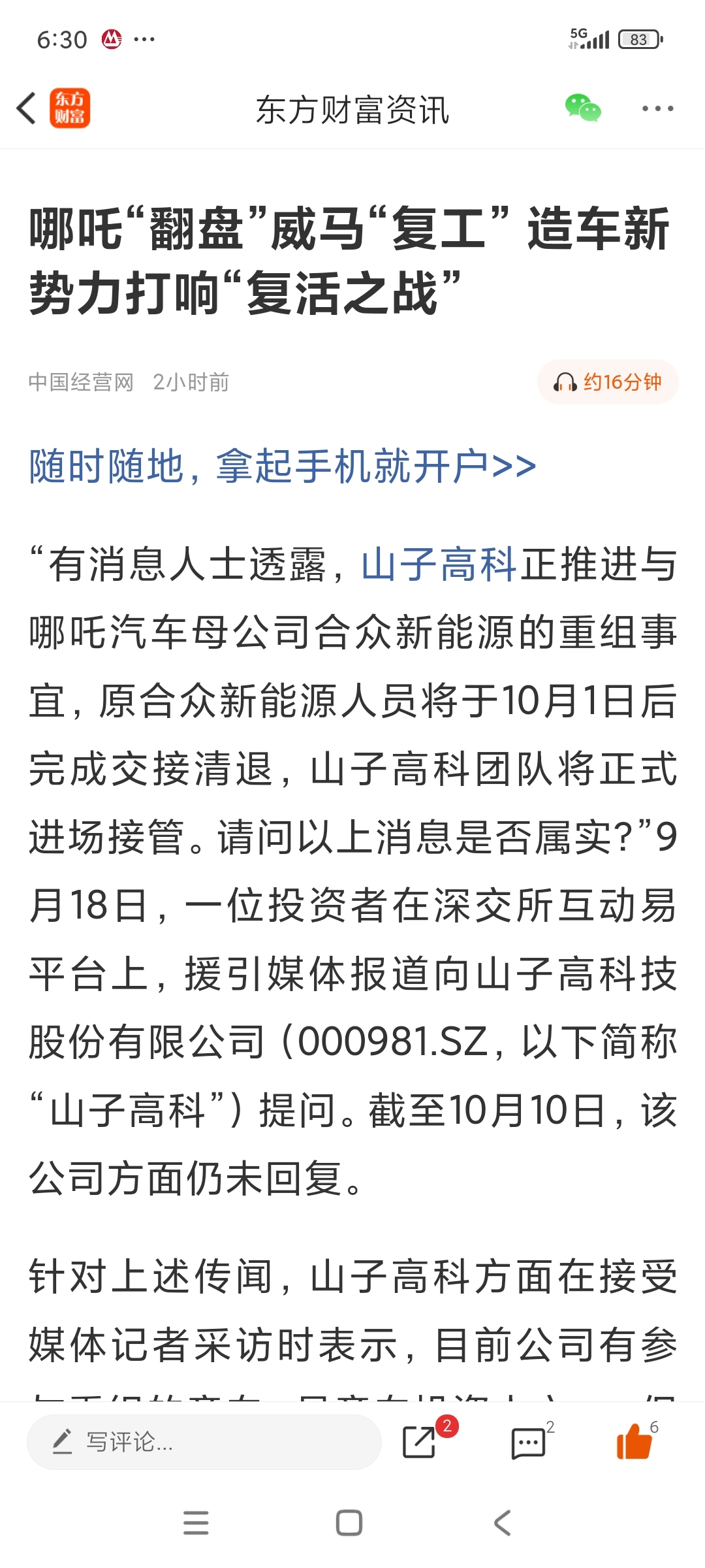 $山子高科(SZ000981)$ 开始发酵重组预期基本板上钉钉